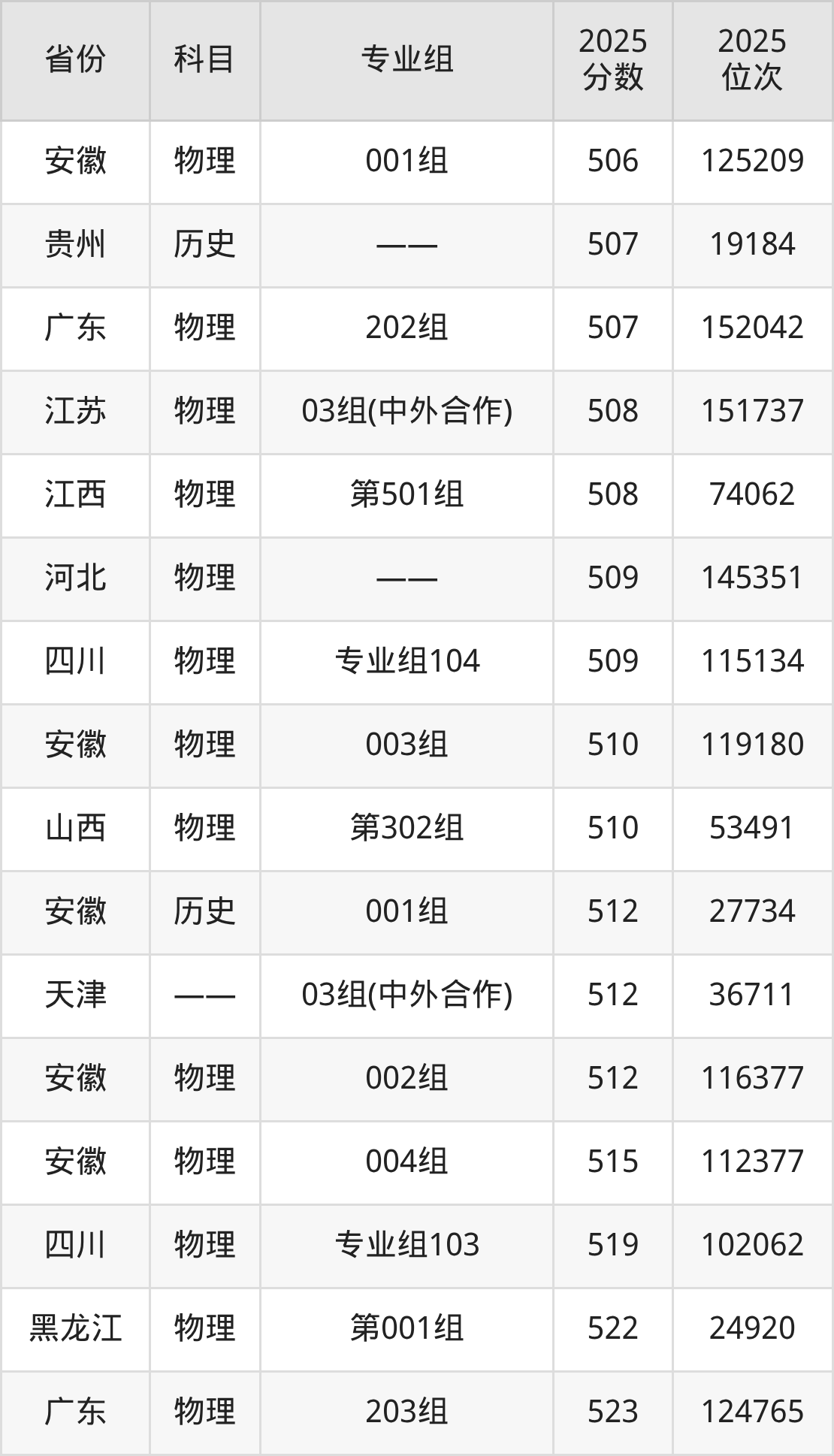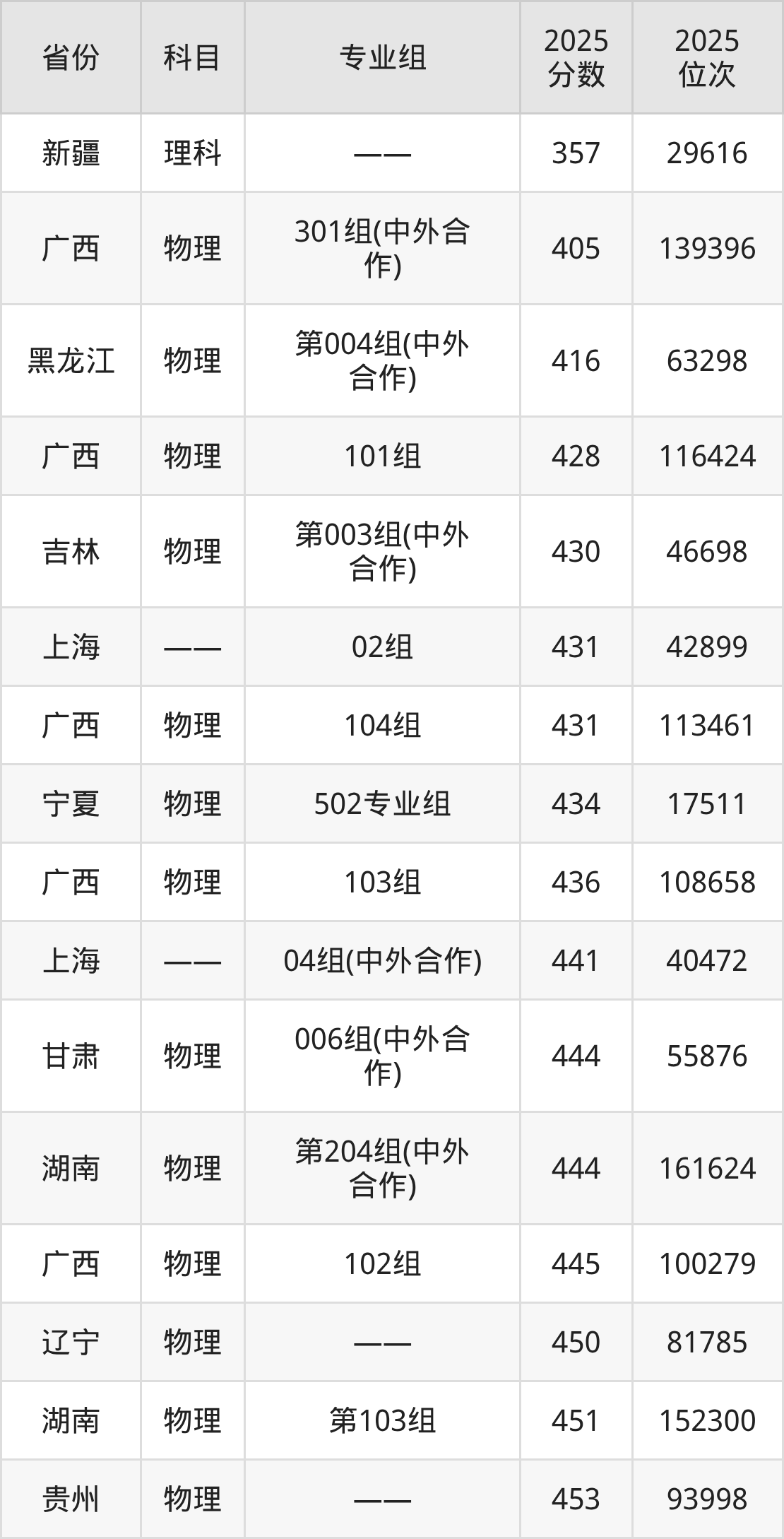 物理类:2025年锦州医科大学录取最低分是405分(广西),对应的位次排名是139396名。
