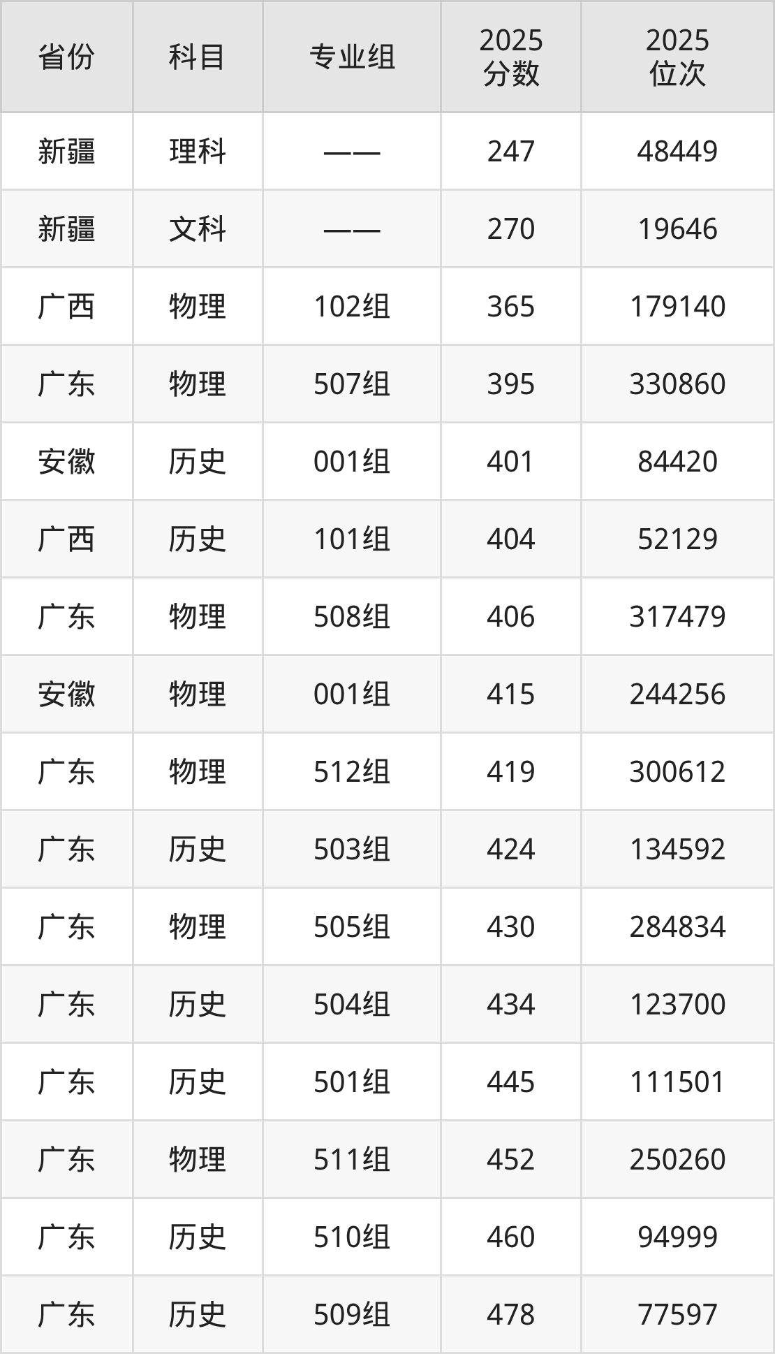 物理类:2025年广东司法警官职业学院录取最低分是365分(广西),对应的位次排名是179140名。