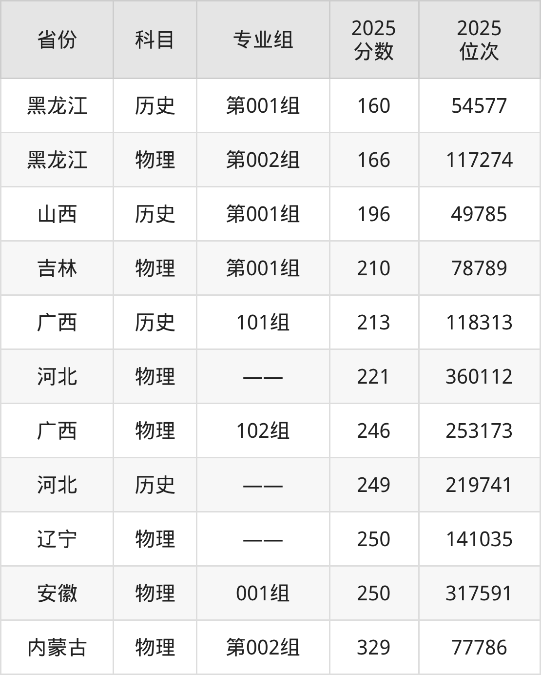历史类:2025年哈尔滨城市职业学院录取最低分是196分(山西),对应的位次排名是49785名。