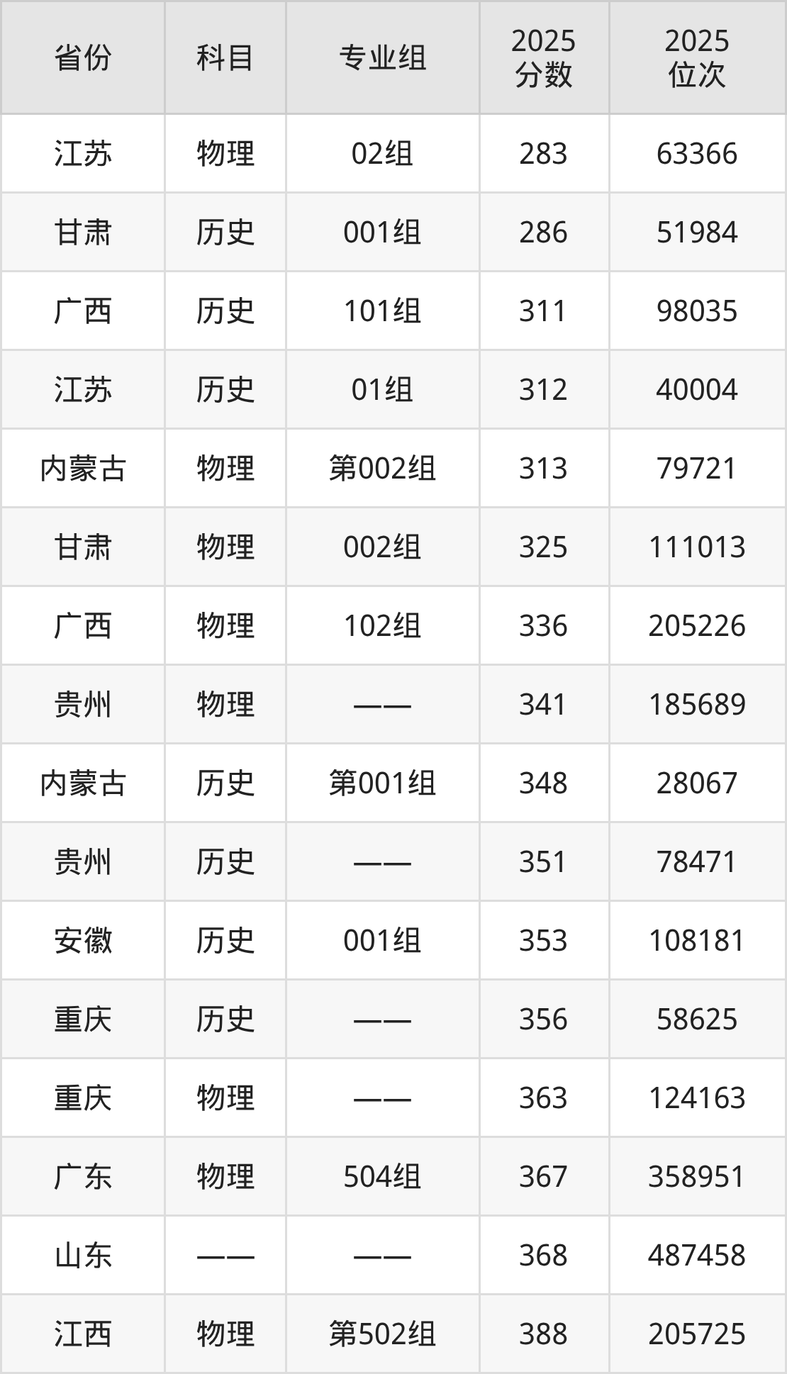 物理类:2025年河南测绘职业学院录取最低分是283分(江苏),对应的位次排名是63366名。