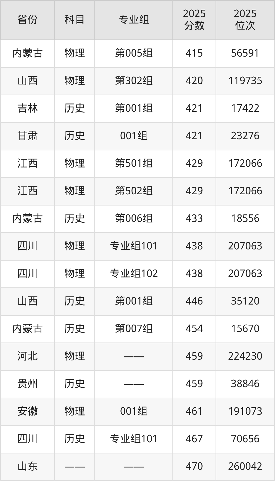 3+3地区:2025年哈尔滨剑桥学院录取最低分是470分(山东),对应的位次排名是260042名。
