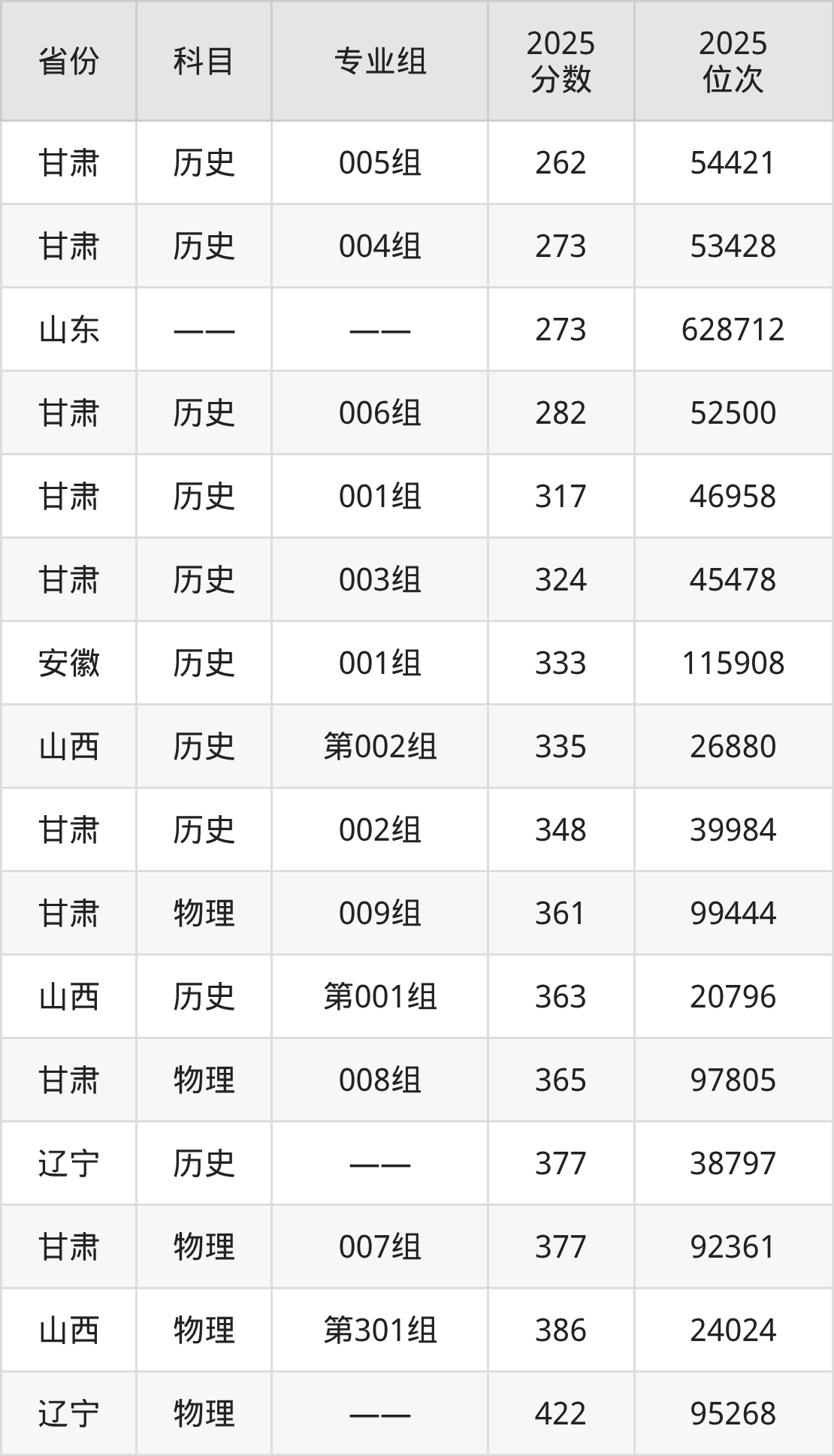 物理类:2025年济南职业学院录取最低分是361分(甘肃),对应的位次排名是99444名。