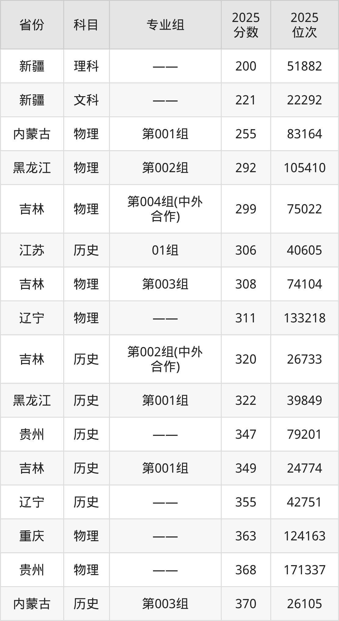 物理类:2025年吉林电子信息职业技术学院录取最低分是255分(内蒙古),对应的位次排名是83164名。