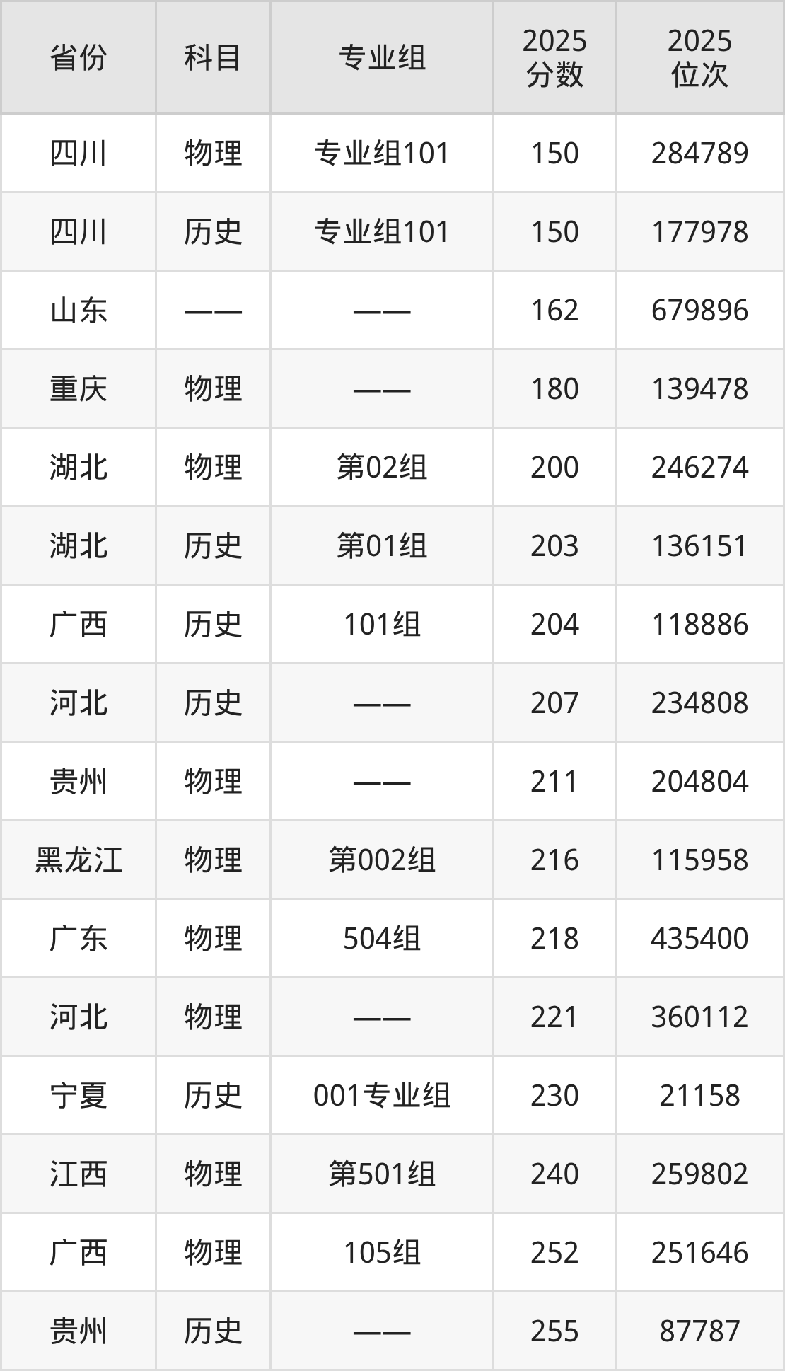 物理类:2025年云南三鑫职业技术学院录取最低分是150分(四川),对应的位次排名是284789名。