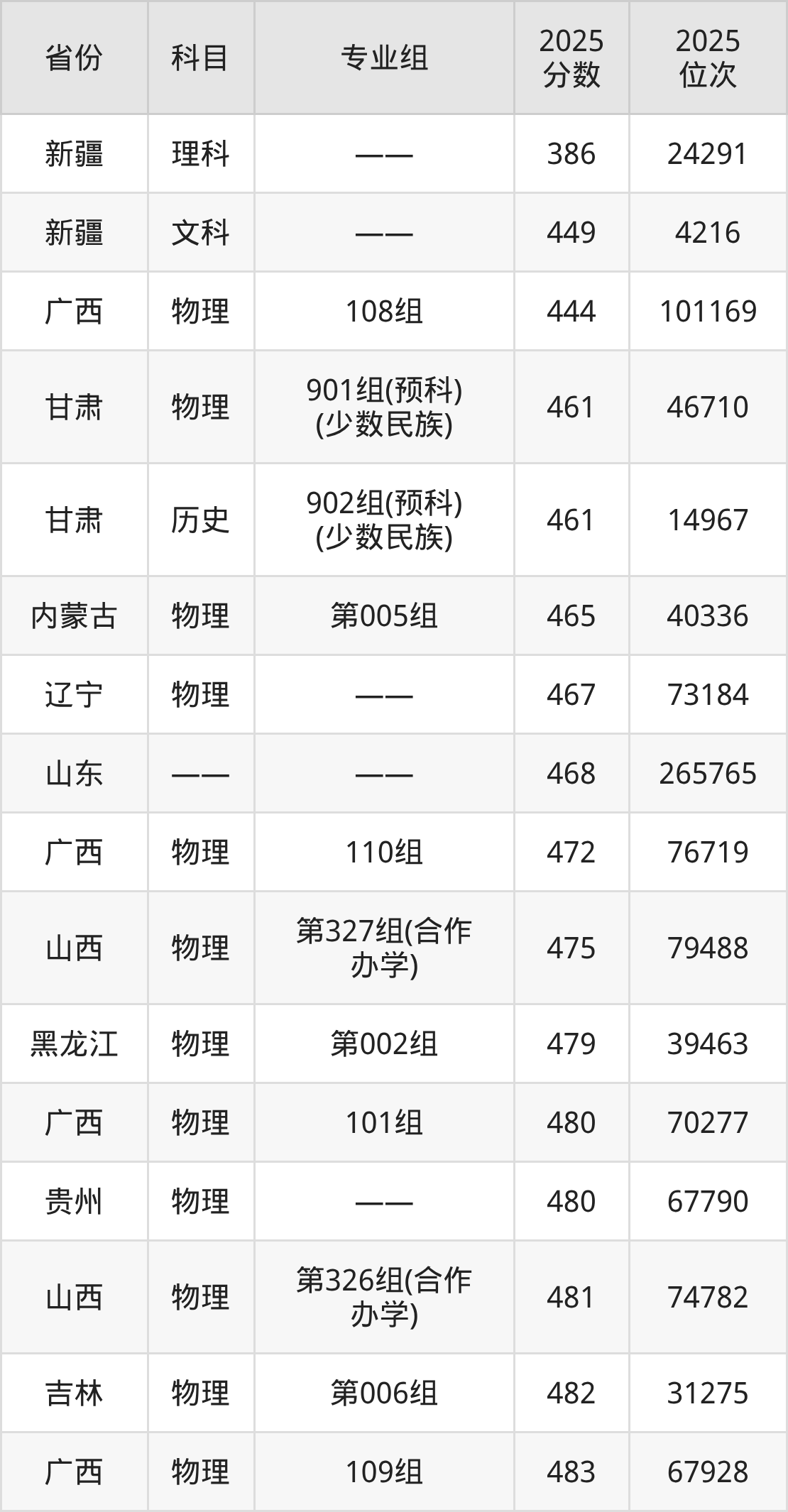 文科:2025年河北科技大学录取最低分是449分(新疆),对应的位次排名是4216名。