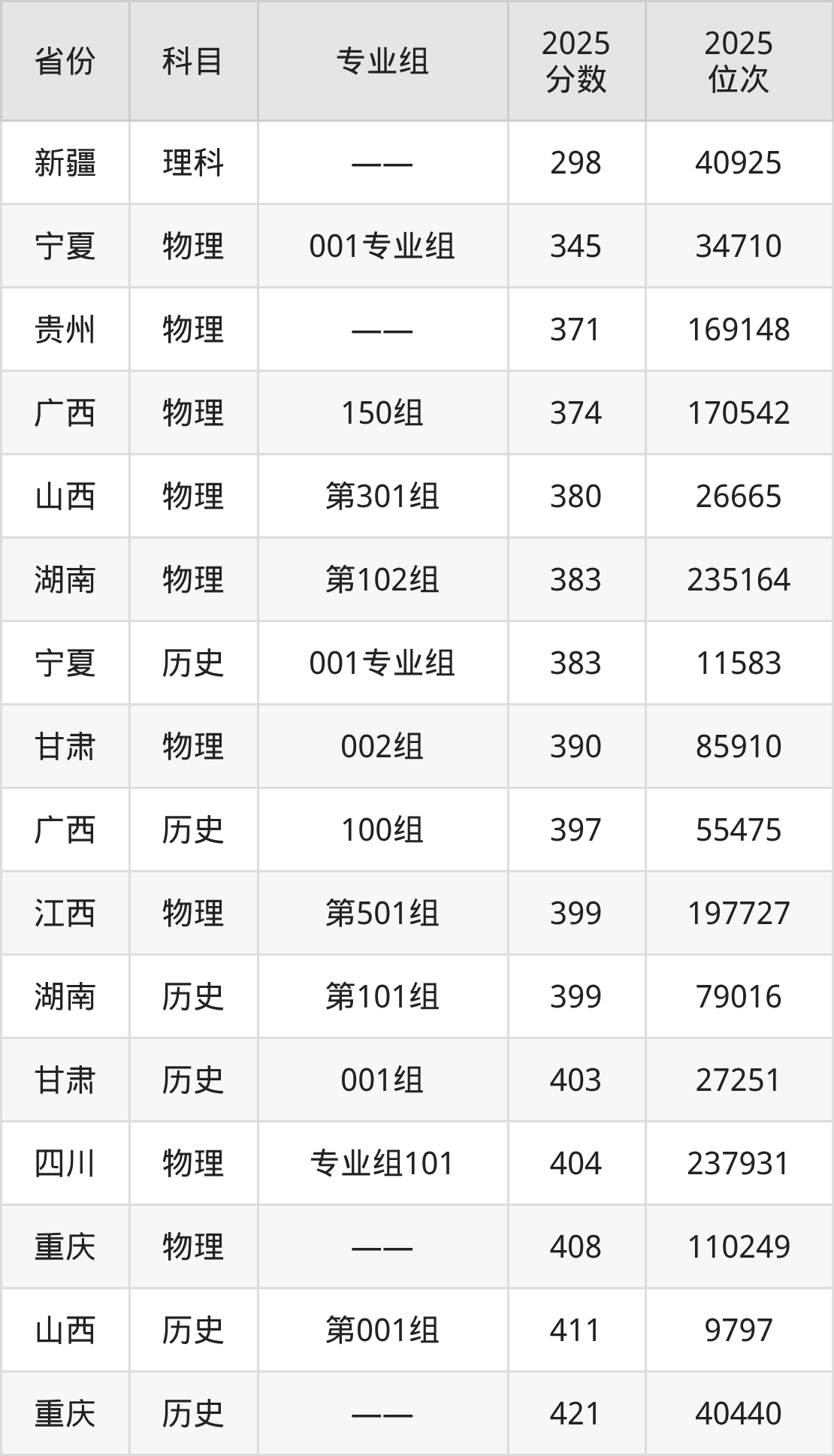 理科:2025年洛阳职业技术学院录取最低分是298分(新疆),对应的位次排名是40925名。