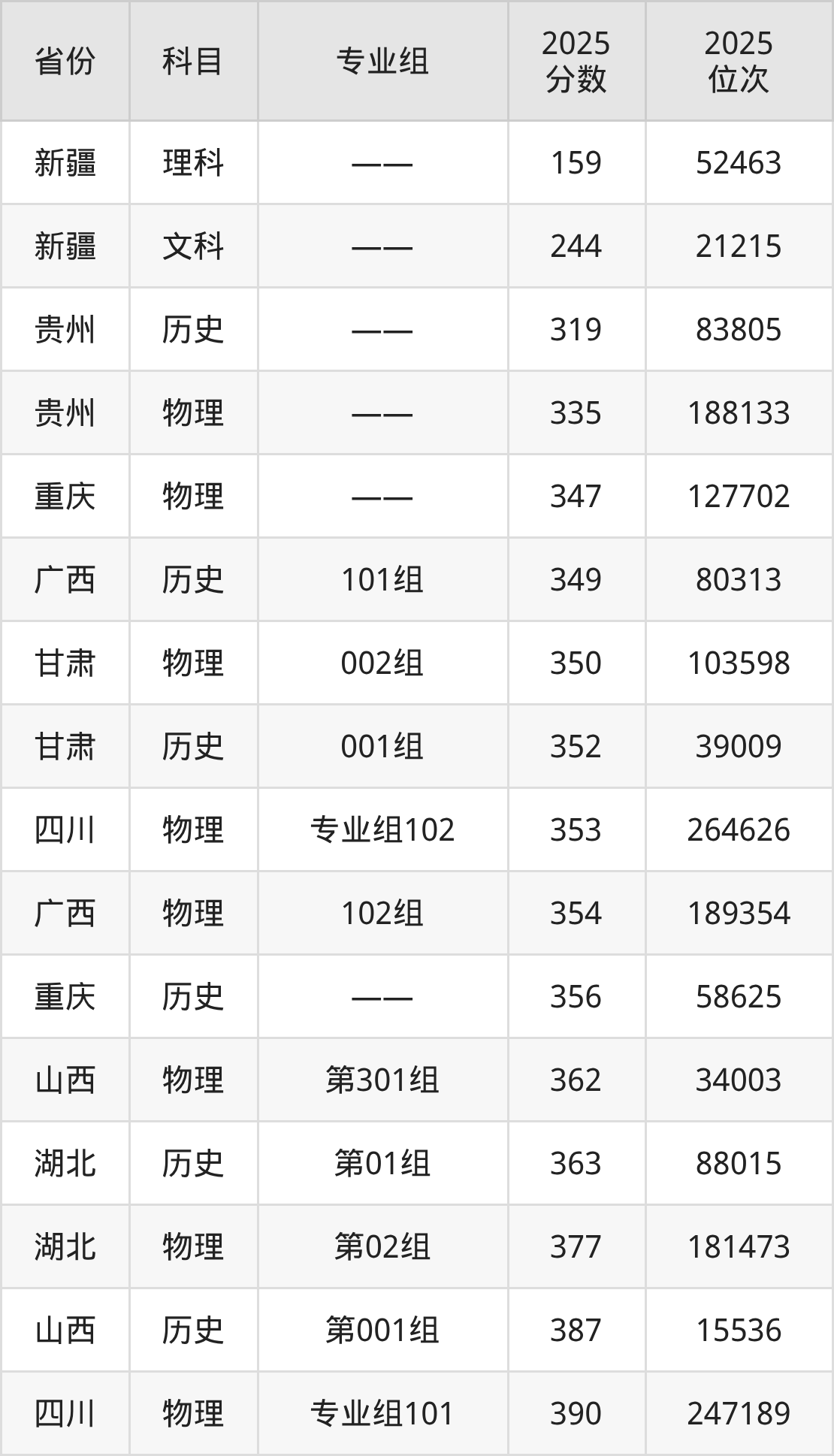 物理类:2025年重庆安全技术职业学院录取最低分是335分(贵州),对应的位次排名是188133名。