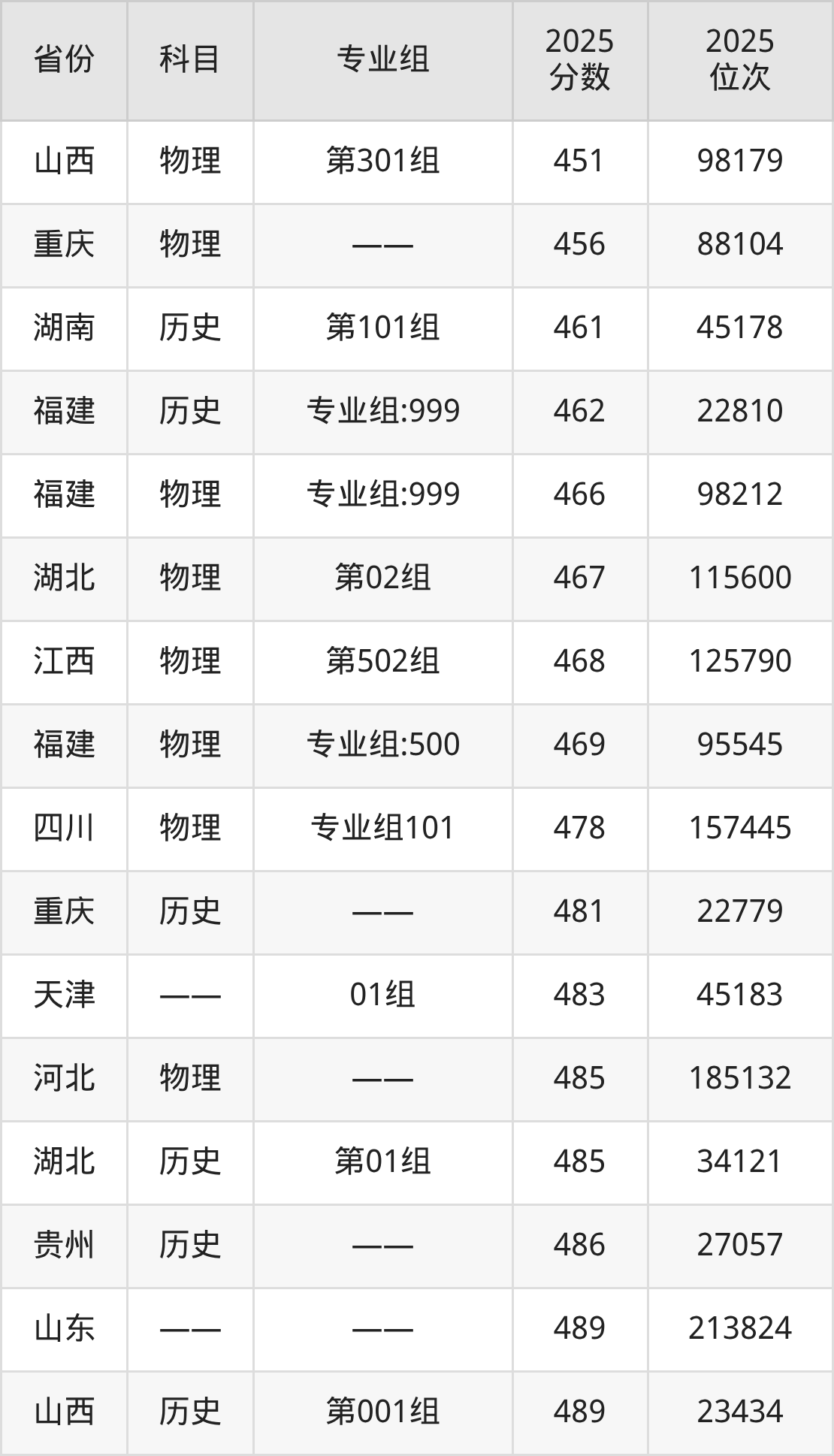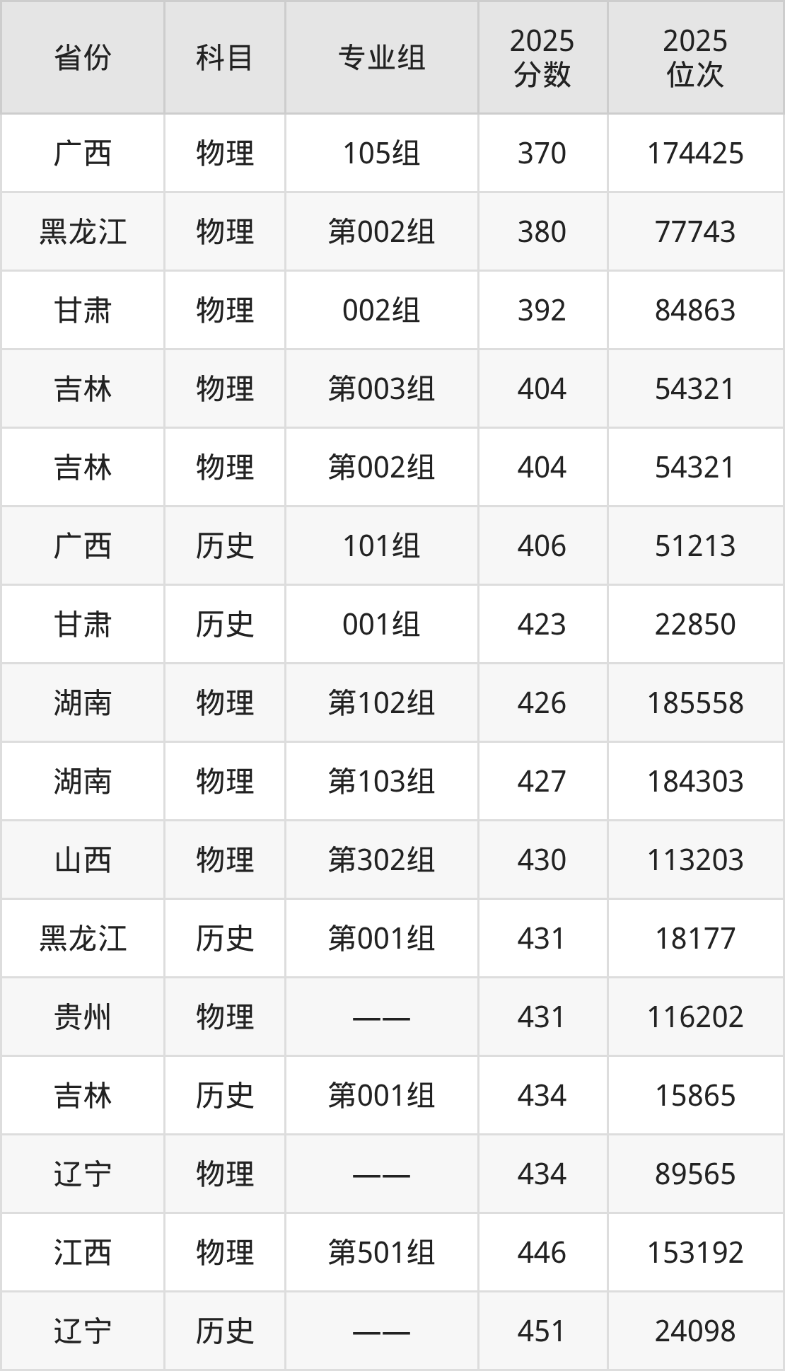 物理类:2025年仰恩大学录取最低分是370分(广西),对应的位次排名是174425名。