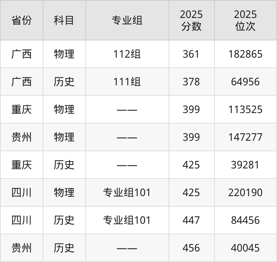 物理类:2025年云南司法警官职业学院录取最低分是361分(广西),对应的位次排名是182865名。