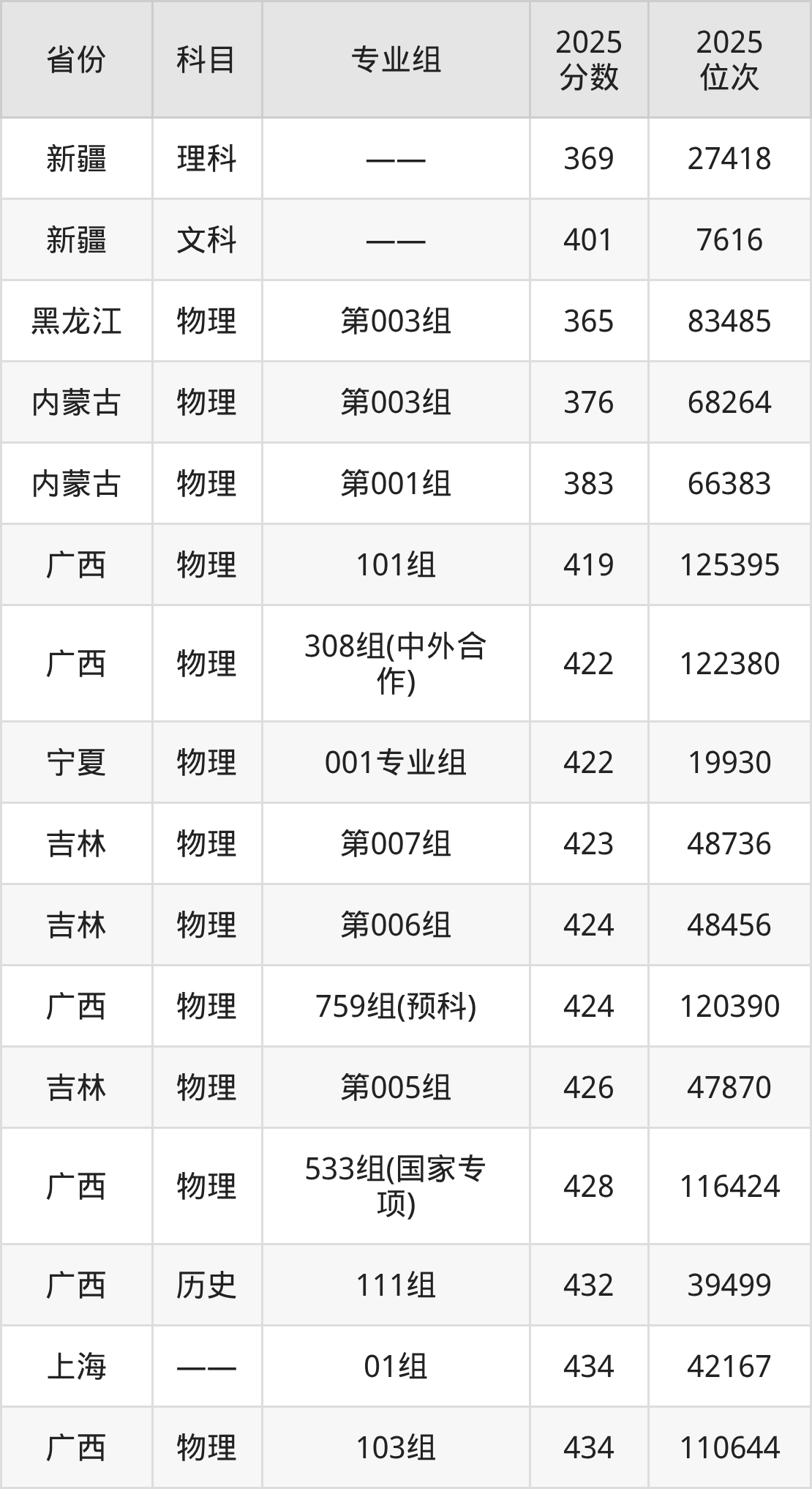 历史类:2025年北方民族大学录取最低分是432分(广西),对应的位次排名是39499名。