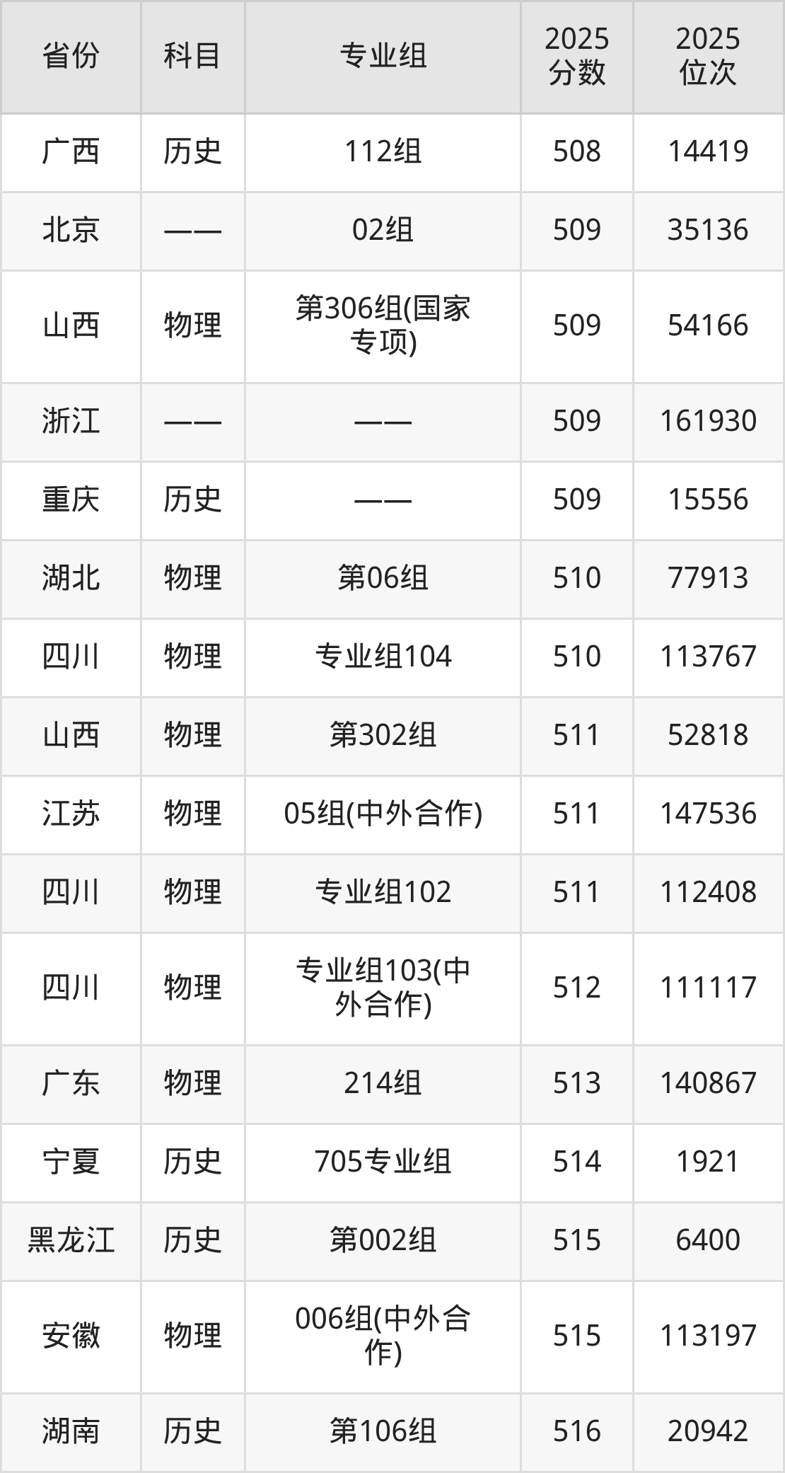 2025年北方民族大学全国排名第187位,2025年录取分数线最低365分(位次83485)。本文将展示北方民族大学在各省最低录取分数线汇总,供2026届想要报考该校的考生查阅。