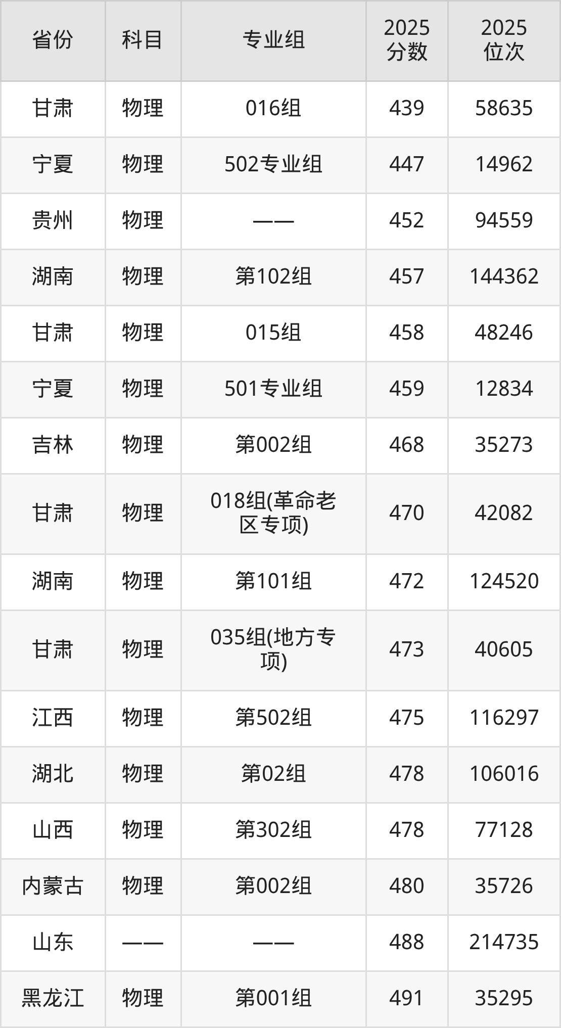 物理类:2025年甘肃医学院录取最低分是389分(黑龙江),对应的位次排名是74217名。