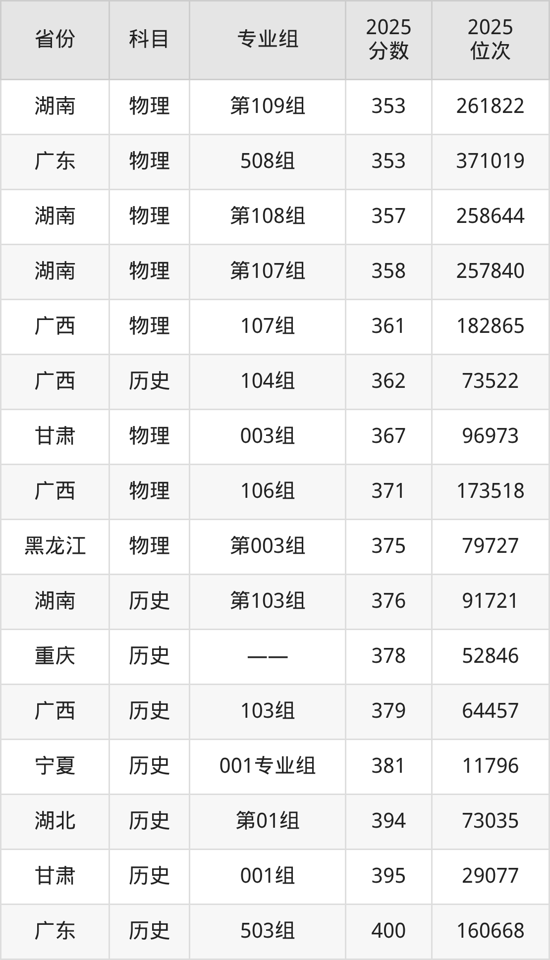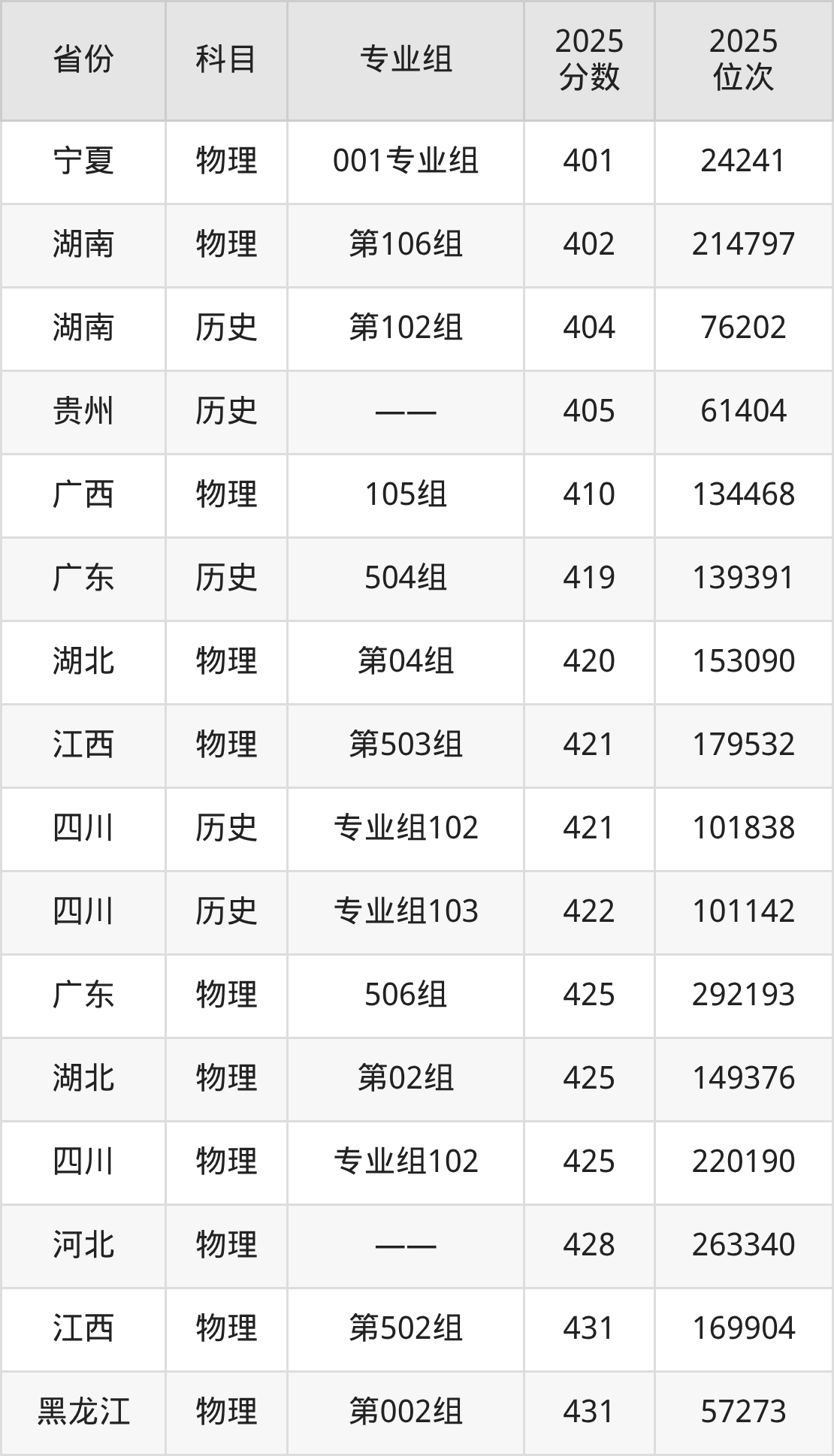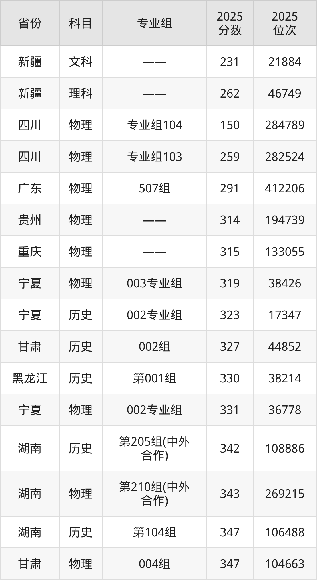 物理类:2025年永州职业技术学院录取最低分是150分(四川),对应的位次排名是284789名。