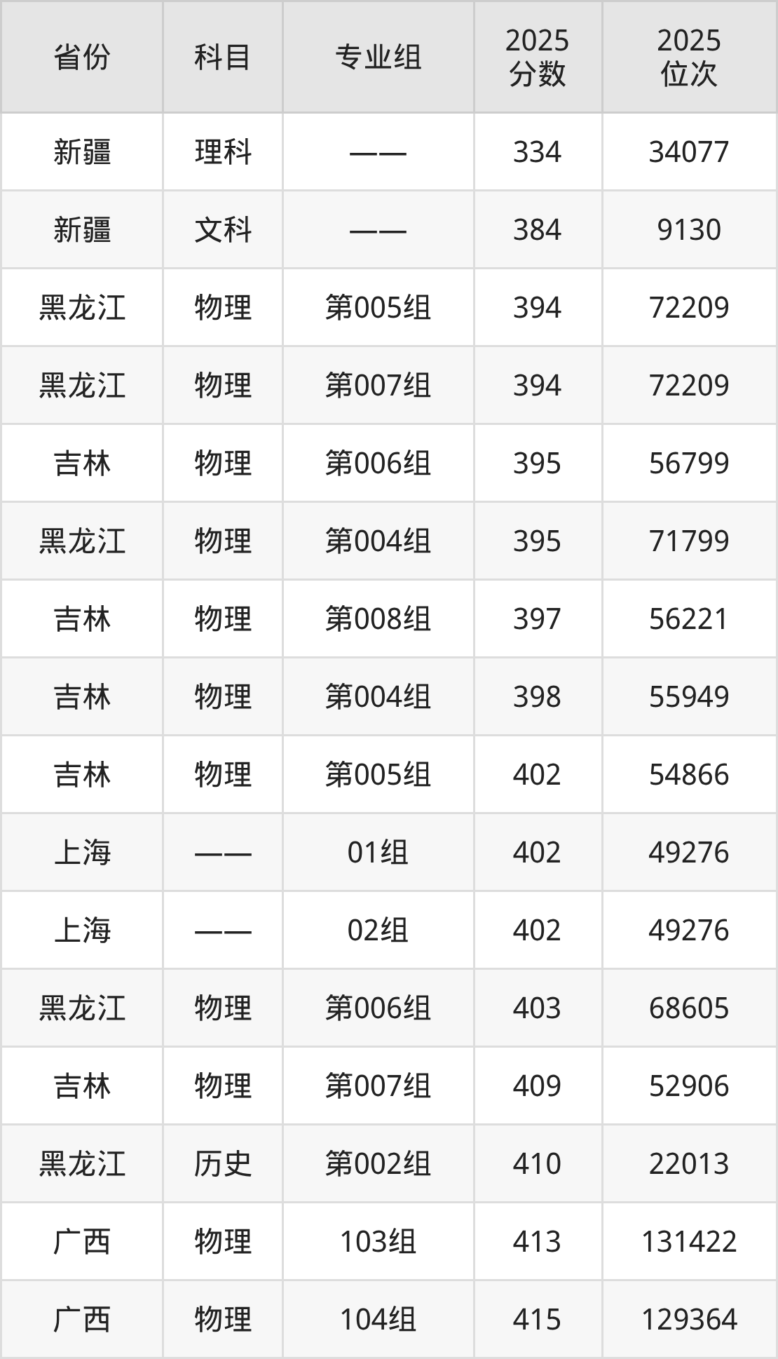 物理类:2025年新疆科技学院录取最低分是394分(黑龙江),对应的位次排名是72209名。