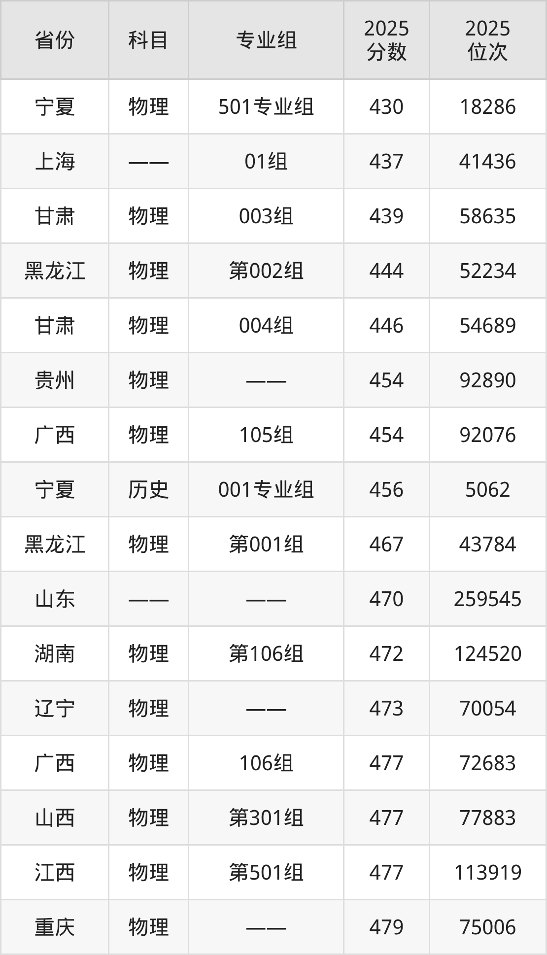 物理类:2025年南昌师范学院录取最低分是430分(宁夏),对应的位次排名是18286名。