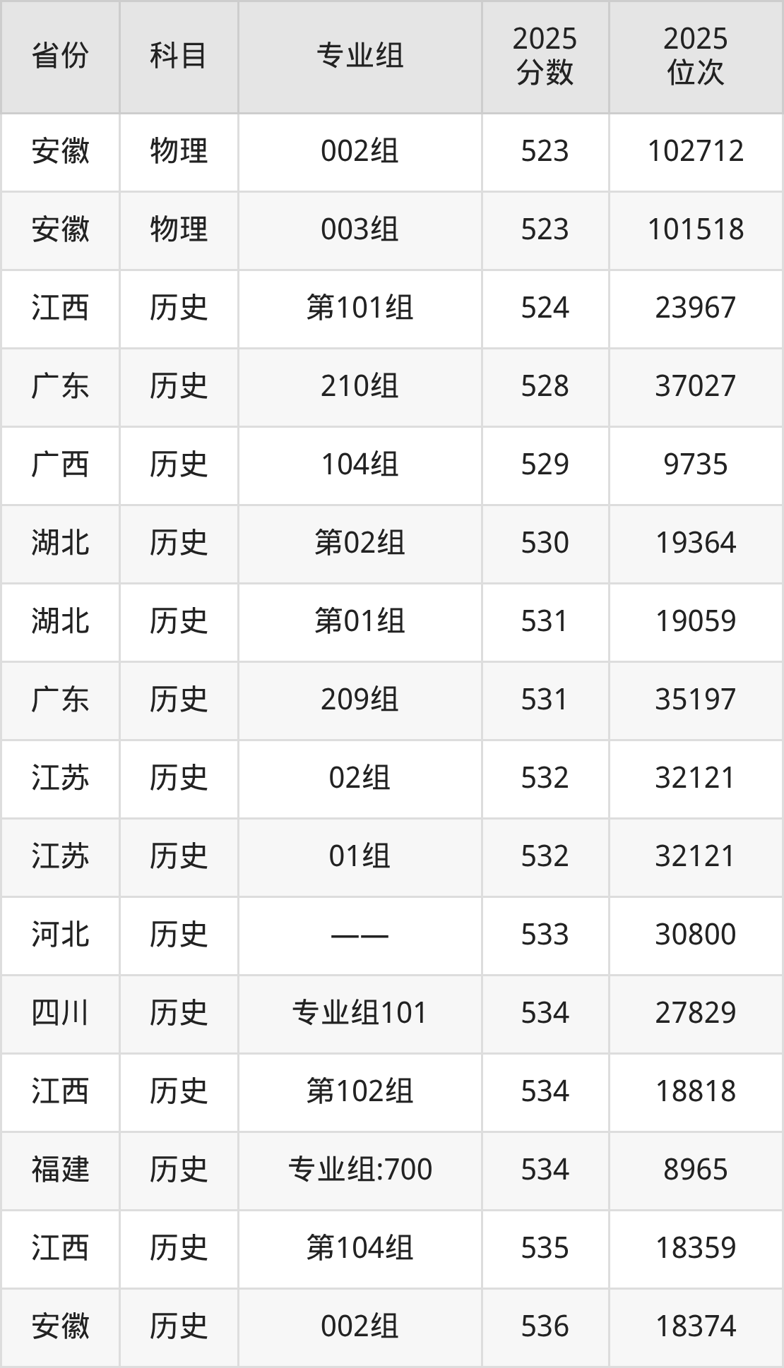 历史类:2025年南昌师范学院省内录取最低分是524分,对应的位次排名是23967名。建议:如果2026年排名超过23967名,那么被该校录取的概率较大。
