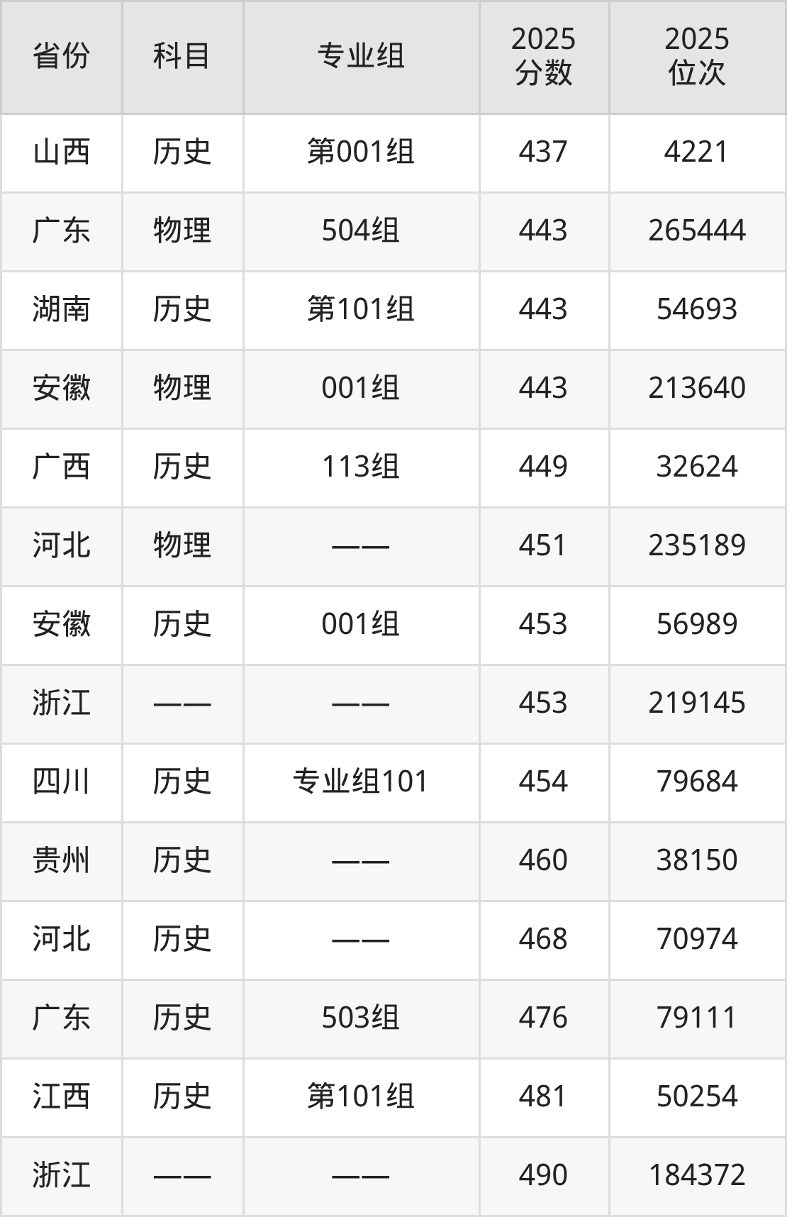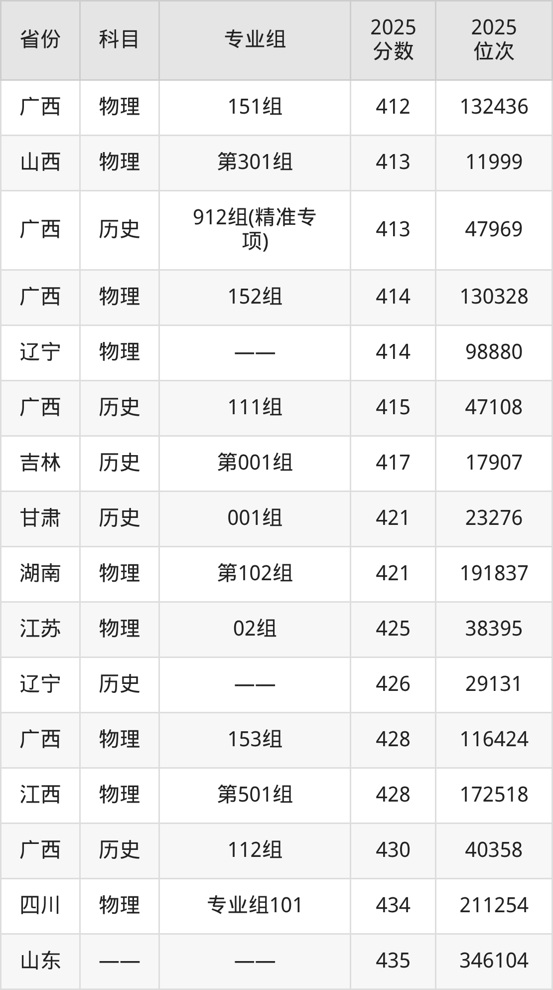 3+3地区:2025年柳州铁道职业技术学院录取最低分是435分(山东),对应的位次排名是346104名。