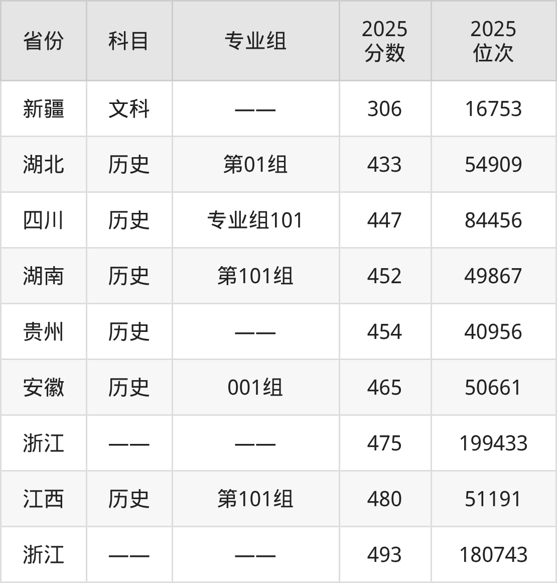 历史类:2025年浙江特殊教育职业学院录取最低分是433分(湖北),对应的位次排名是54909名。