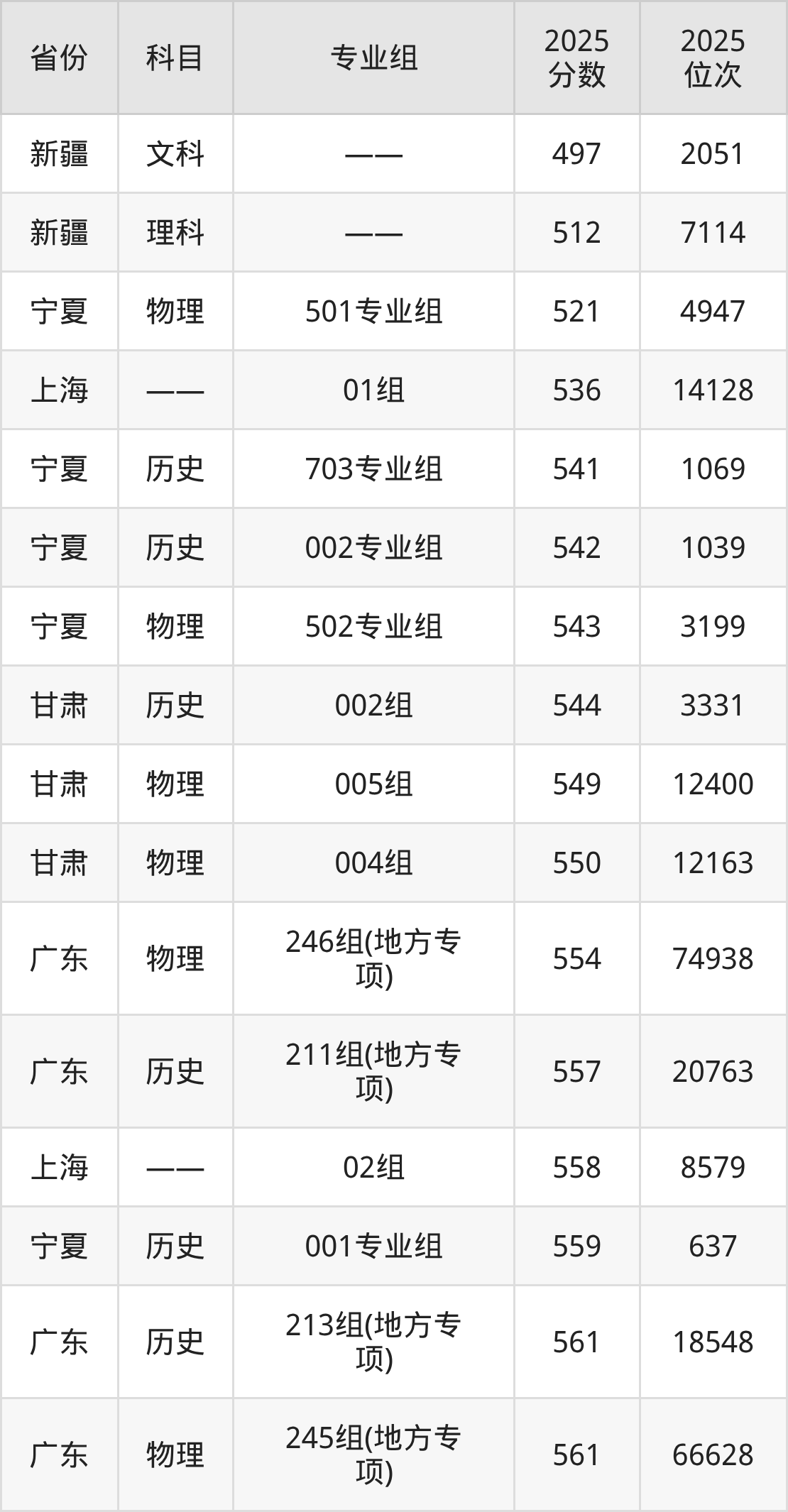 文科:2025年华南师范大学录取最低分是497分(新疆),对应的位次排名是2051名。