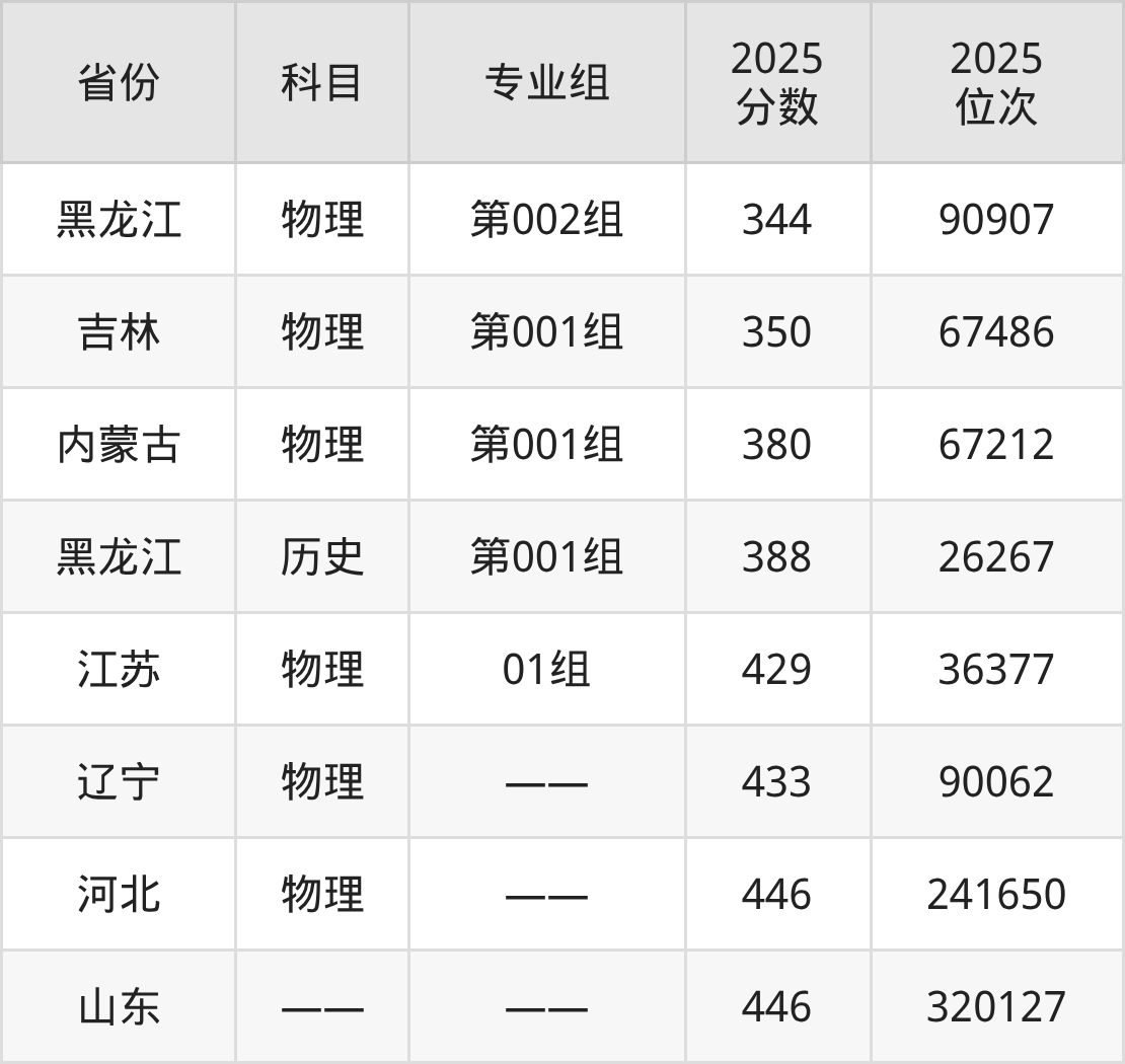 物理类:2025年哈尔滨电力职业技术学院录取最低分是350分(吉林),对应的位次排名是67486名。