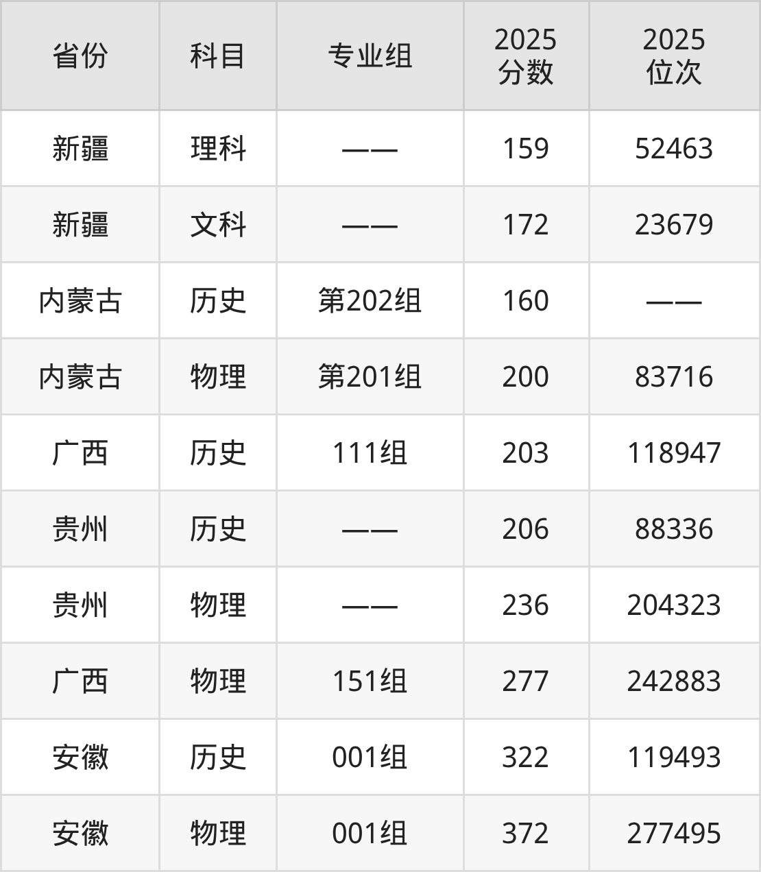 文科:2025年包头轻工职业技术学院录取最低分是172分(新疆),对应的位次排名是23679名。
