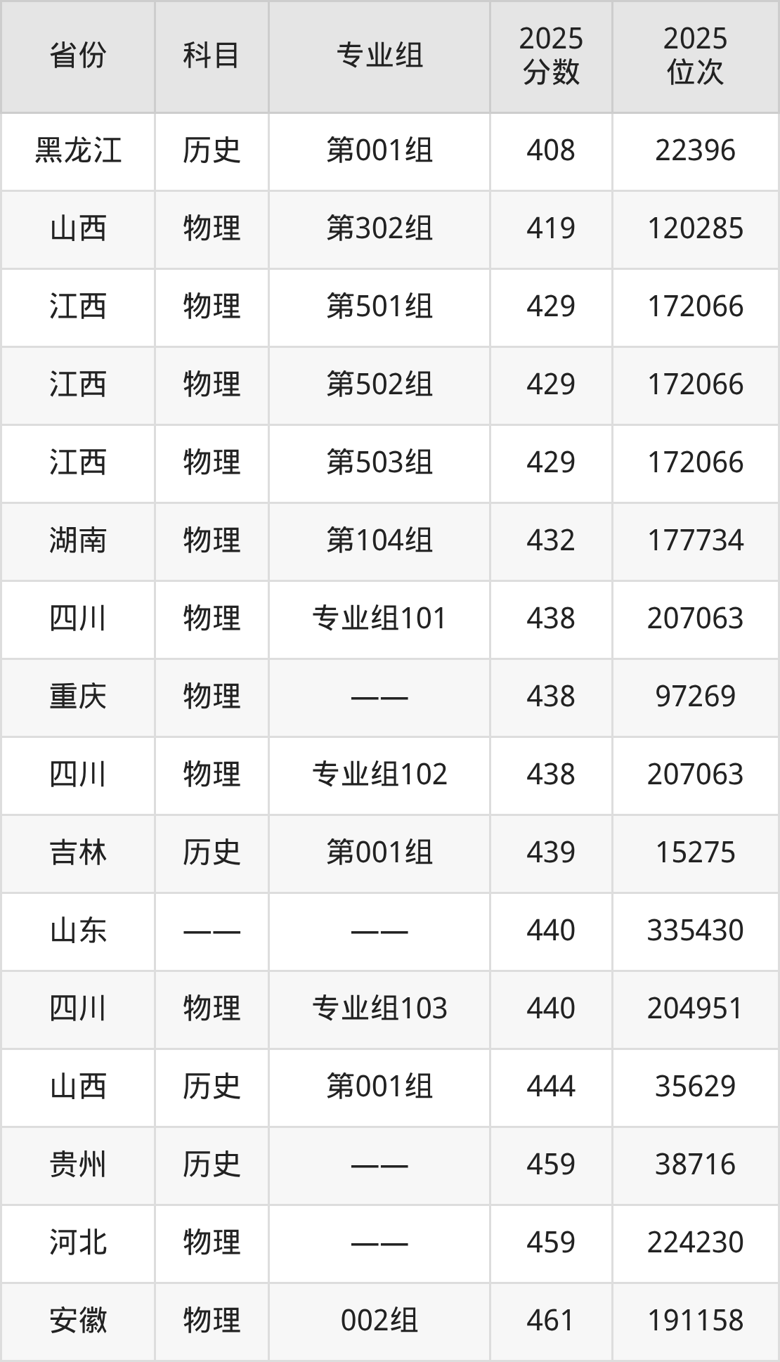 3+3地区:2025年齐齐哈尔工程学院录取最低分是440分(山东),对应的位次排名是335430名。