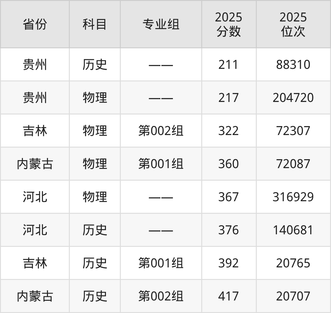物理类:2025年保定职业技术学院录取最低分是217分(贵州),对应的位次排名是204720名。