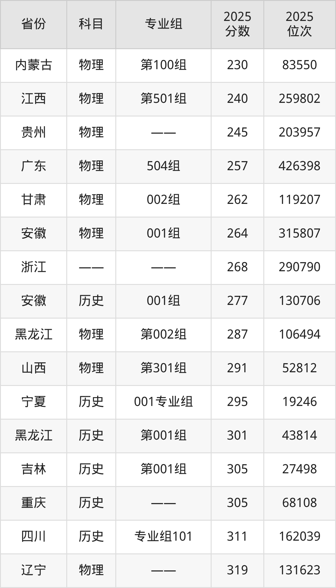 物理类:2025年四川西南航空职业学院省内录取最低分是341分,对应的位次排名是268575名。建议:如果2026年排名超过268575名,那么被该校录取的概率较大。
