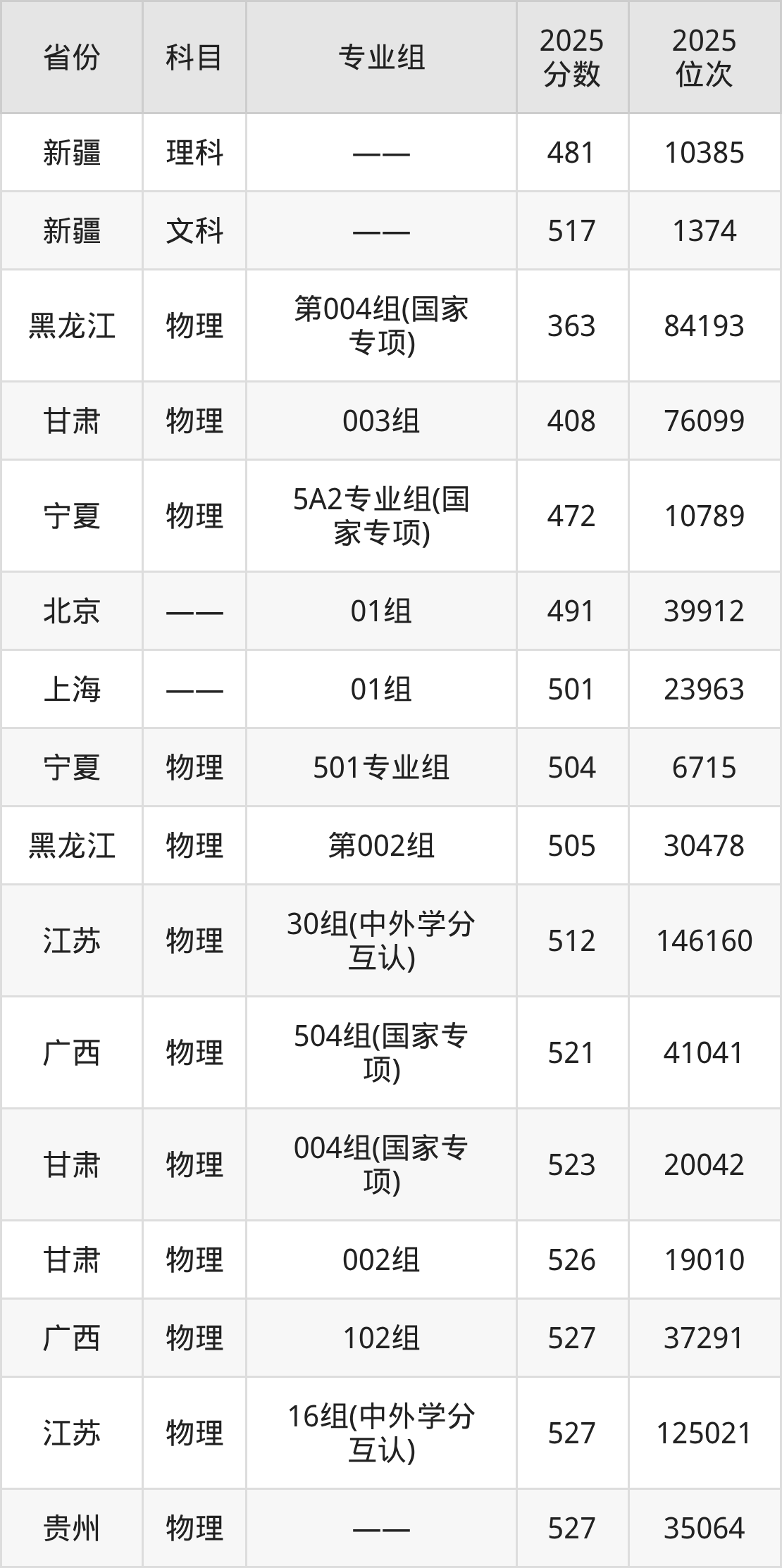 历史类:2025年江苏大学录取最低分是532分(宁夏),对应的位次排名是1329名。