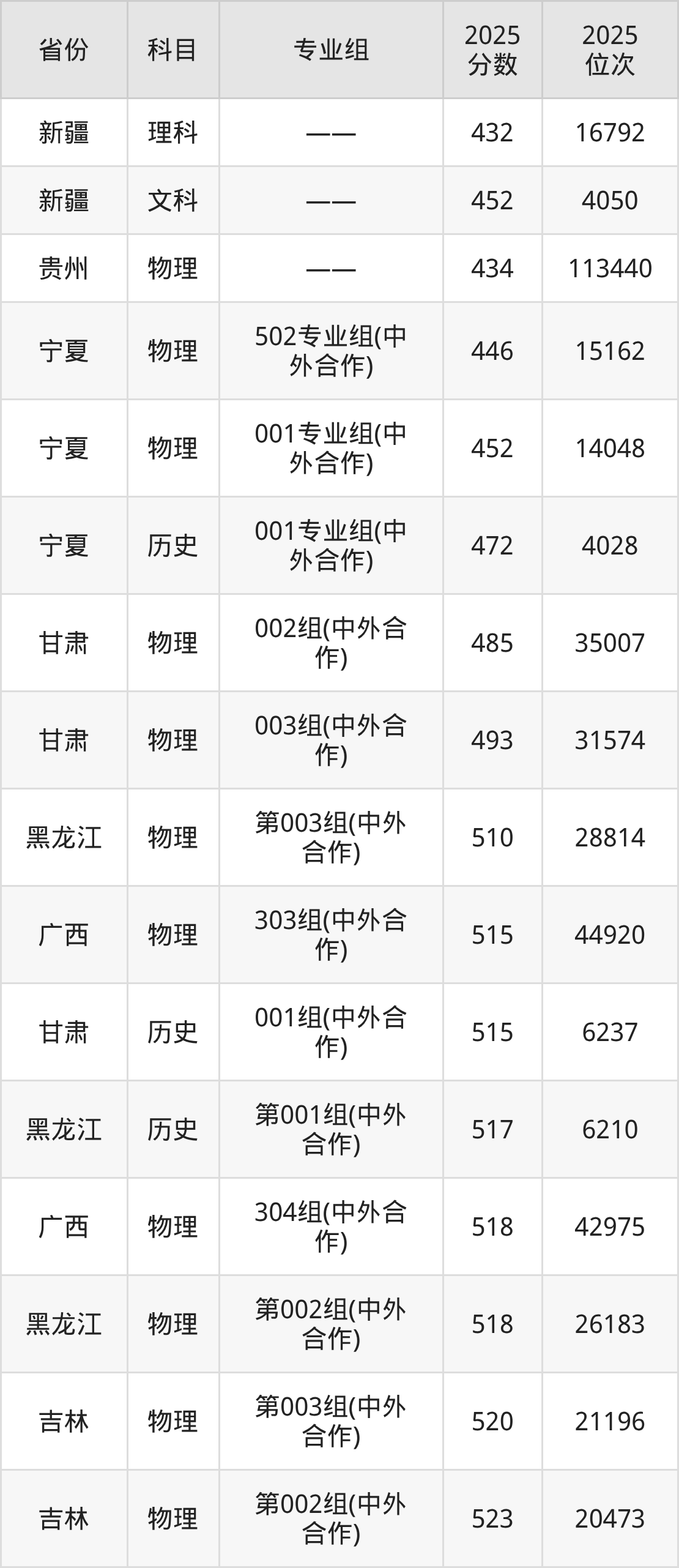 理科:2025年西交利物浦大学录取最低分是432分(新疆),对应的位次排名是16792名。