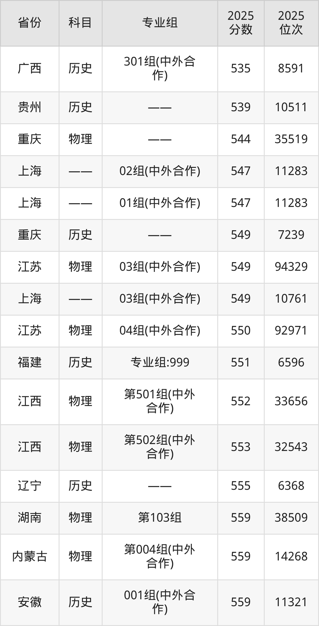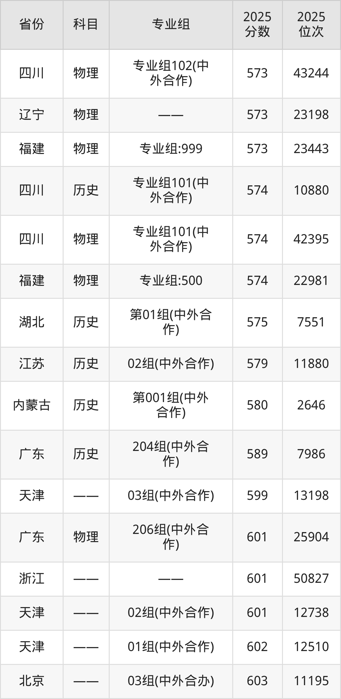 物理类:2025年西交利物浦大学省内录取最低分是549分,对应的位次排名是94329名。建议:如果2026年排名超过94329名,那么被该校录取的概率较大。