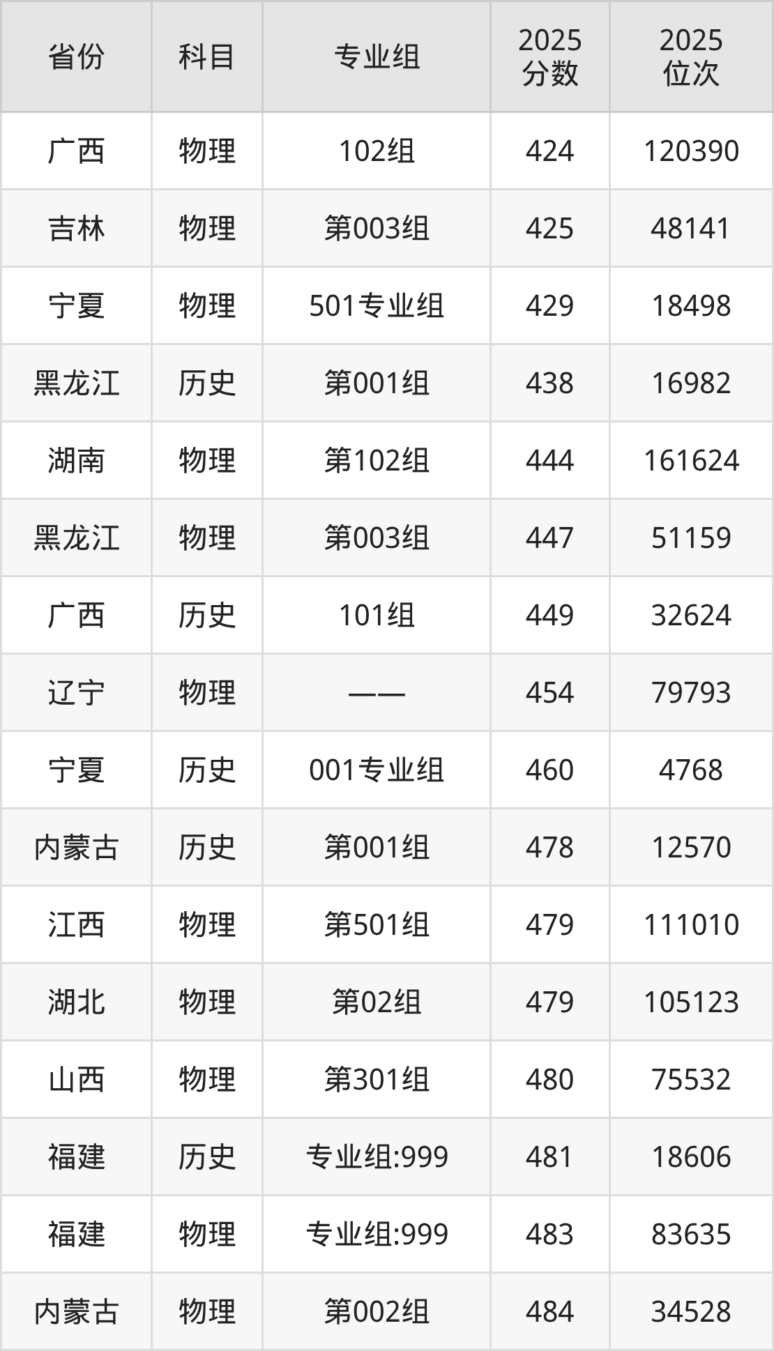 物理类:2025年沧州师范学院录取最低分是424分(广西),对应的位次排名是120390名。
