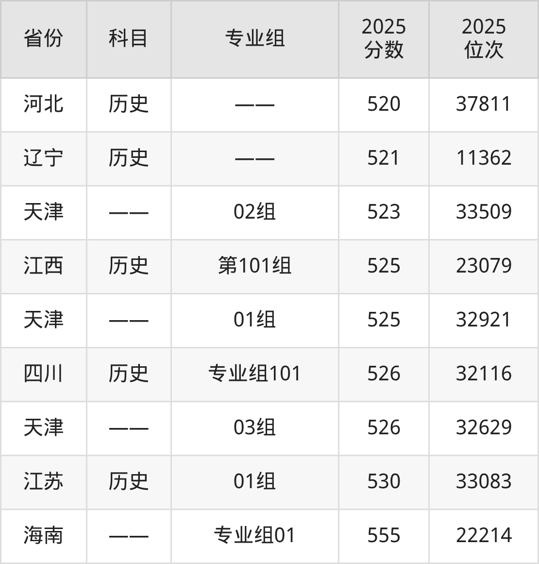历史类:2025年沧州师范学院省内录取最低分是520分,对应的位次排名是37811名。建议:如果2026年排名超过37811名,那么被该校录取的概率较大。