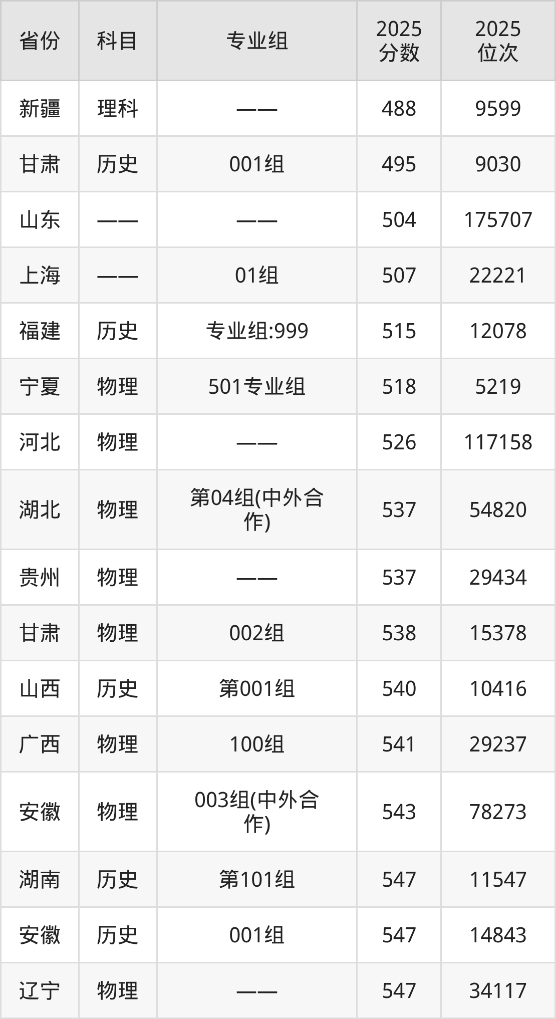 2025年西安理工大学全国排名第113位,2025年录取分数线最低488分(位次9599)。本文将展示西安理工大学在各省最低录取分数线汇总,供2026届想要报考该校的考生查阅。