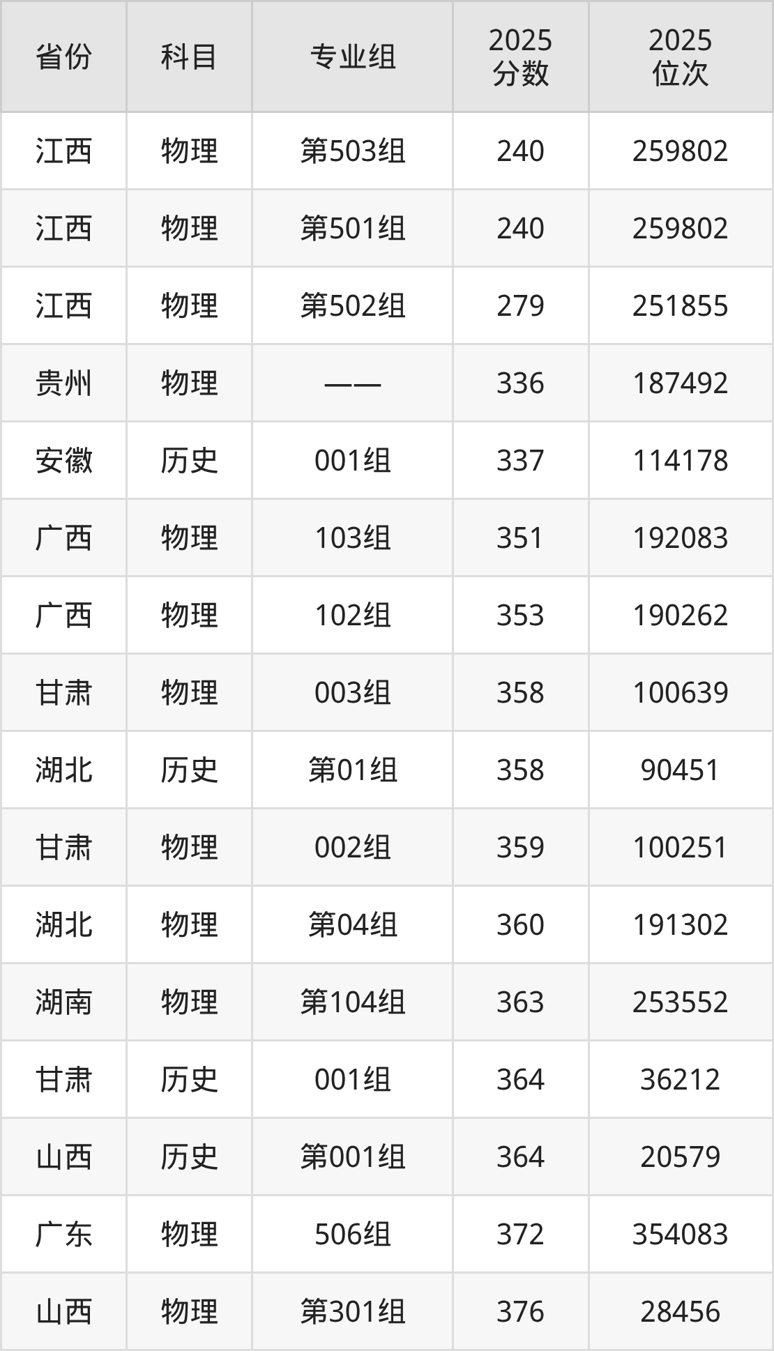 历史类:2025年上饶卫生健康职业学院录取最低分是337分(安徽),对应的位次排名是114178名。