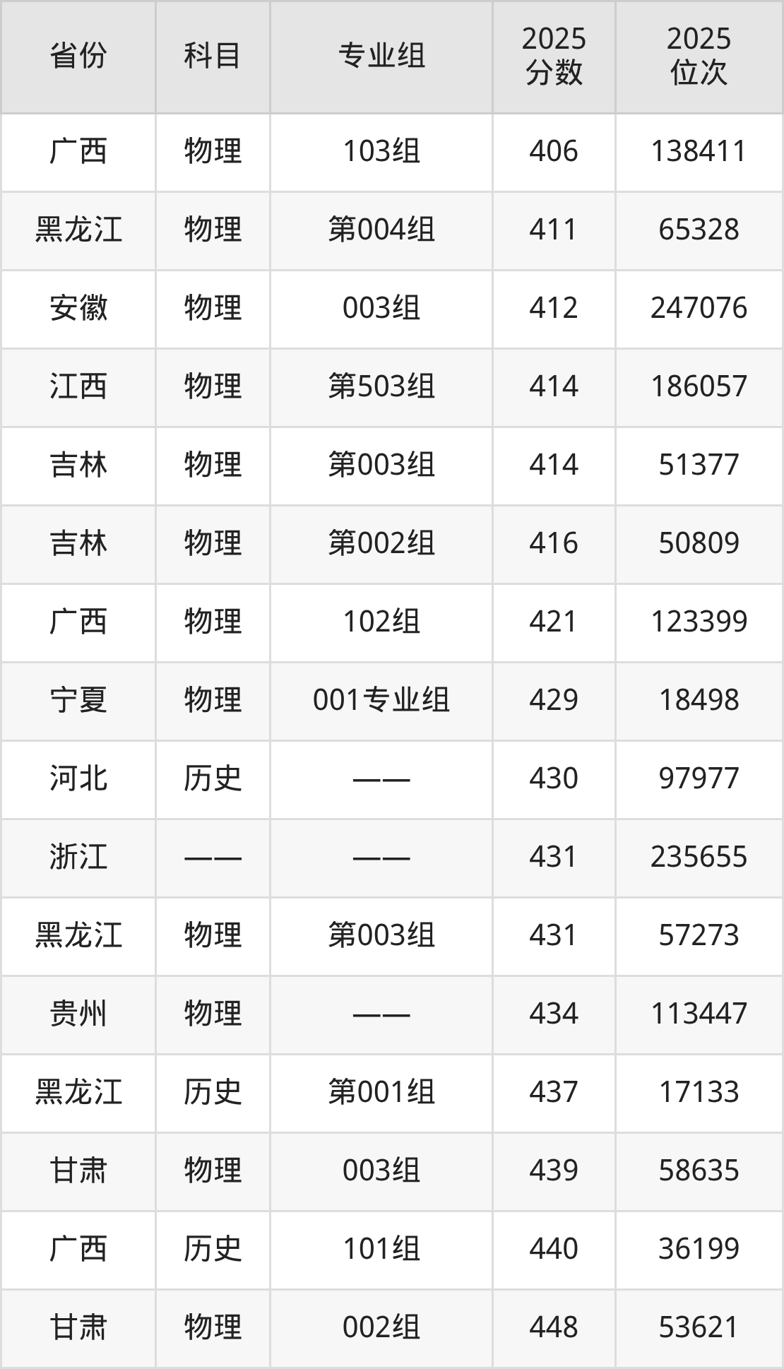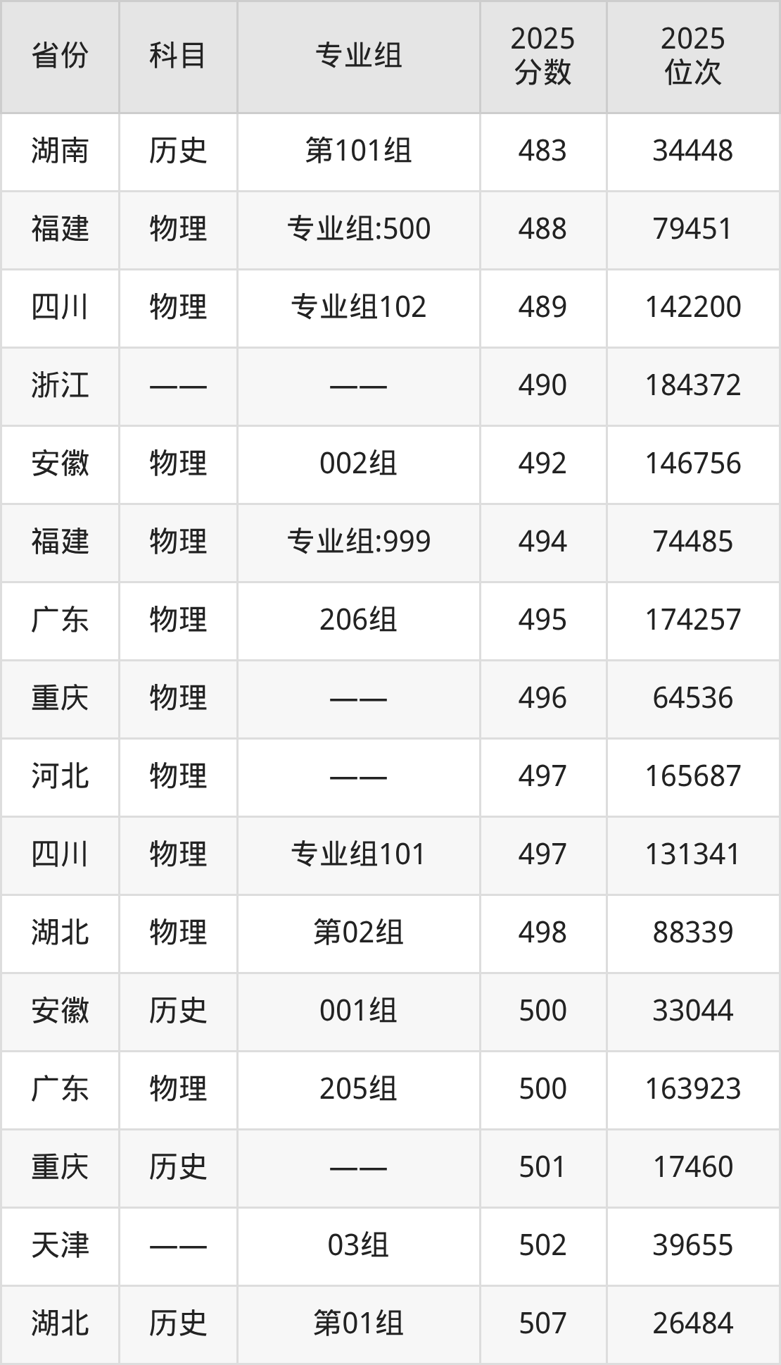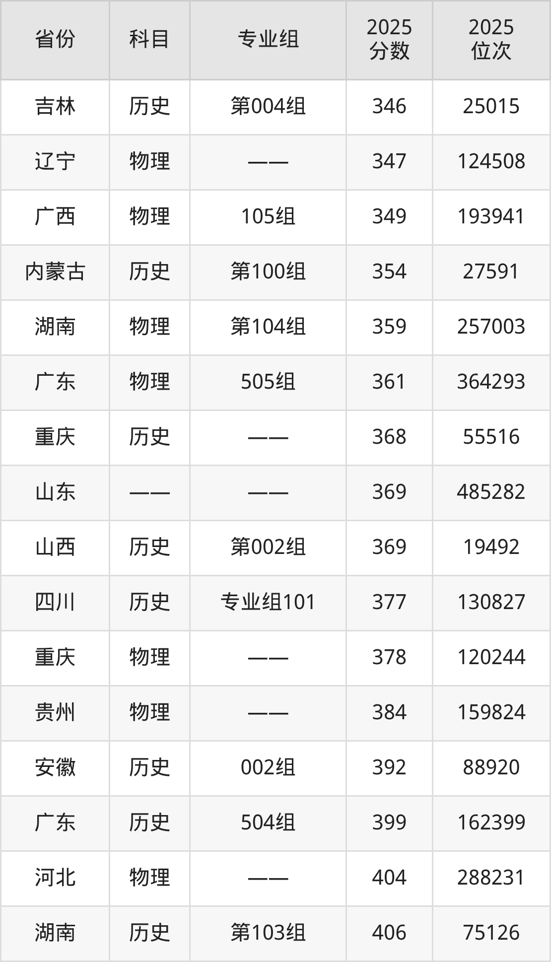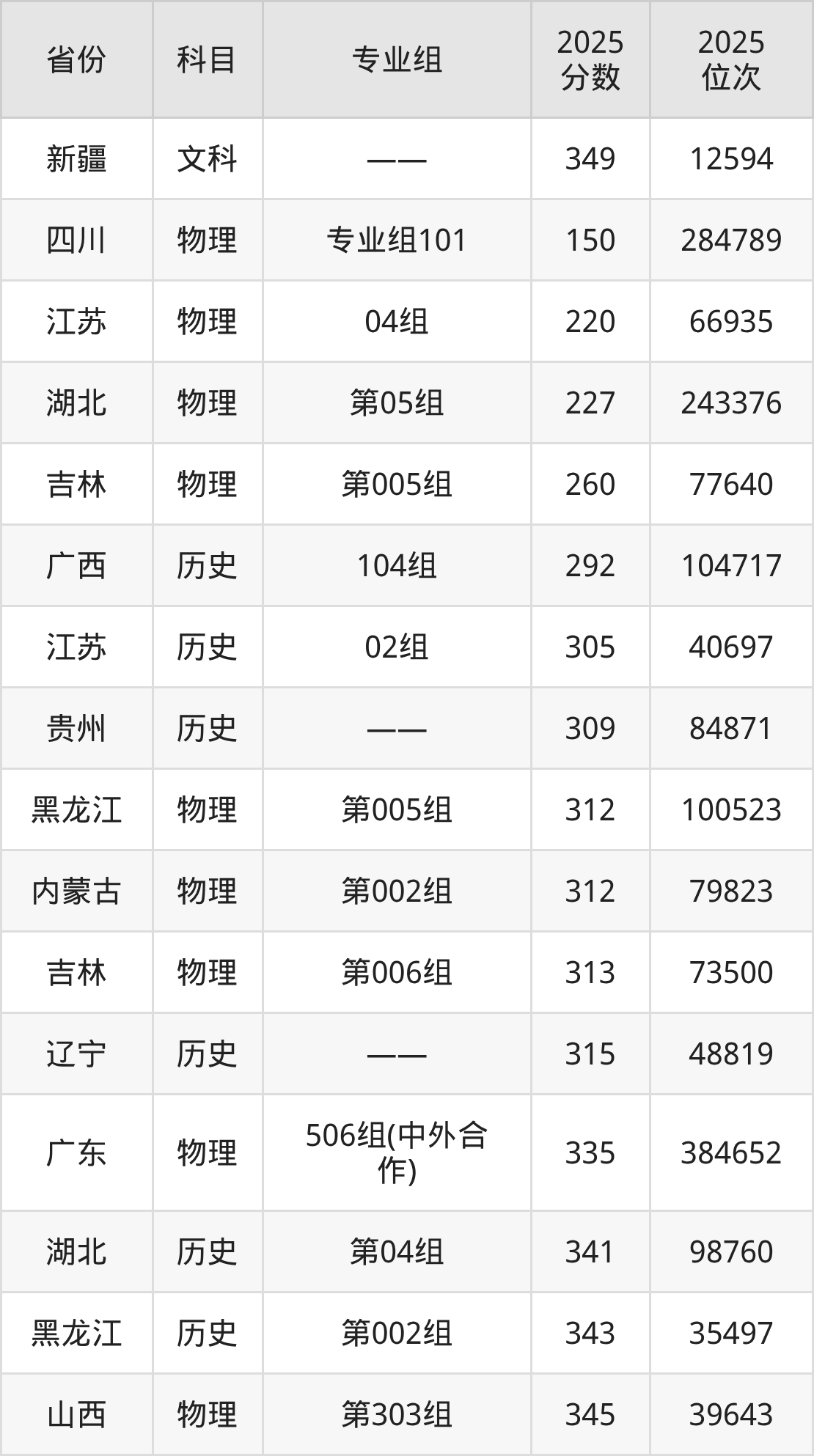2025年河北科技工程职业技术大学全国排名第3位,2025年录取分数线最低150分(位次284789)。本文将展示河北科技工程职业技术大学在各省最低录取分数线汇总,供2026届想要报考该校的考生查阅。