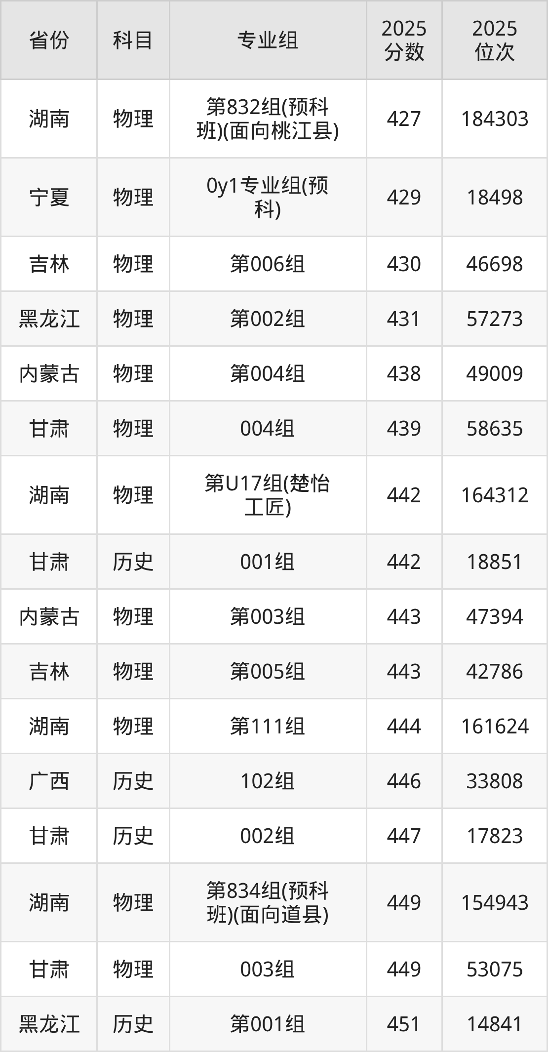 历史类:2025年吉首大学录取最低分是442分(甘肃),对应的位次排名是18851名。