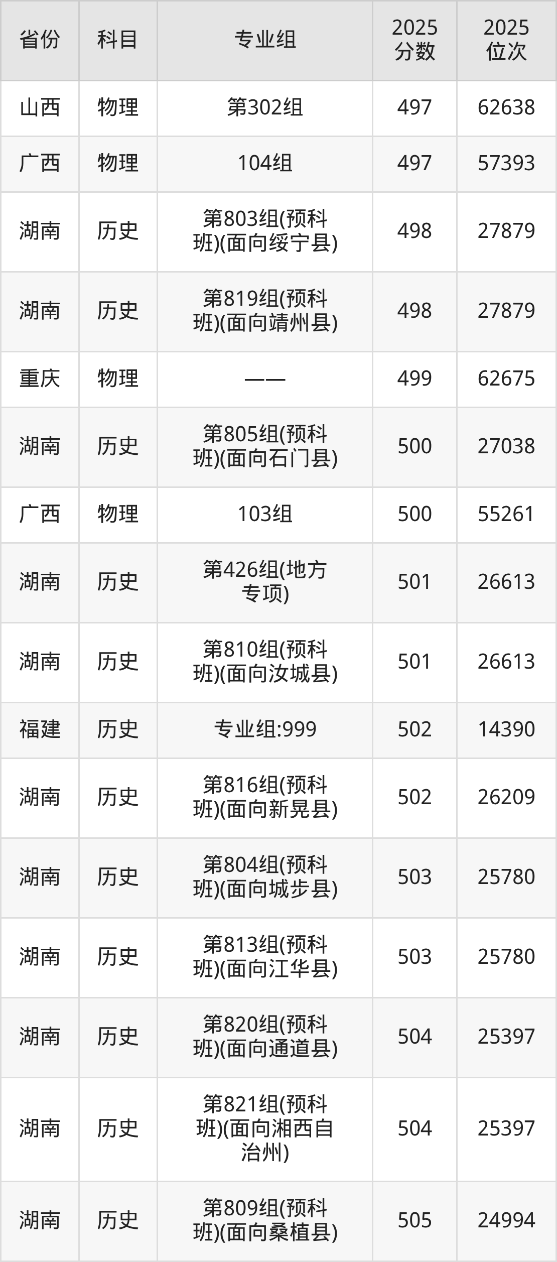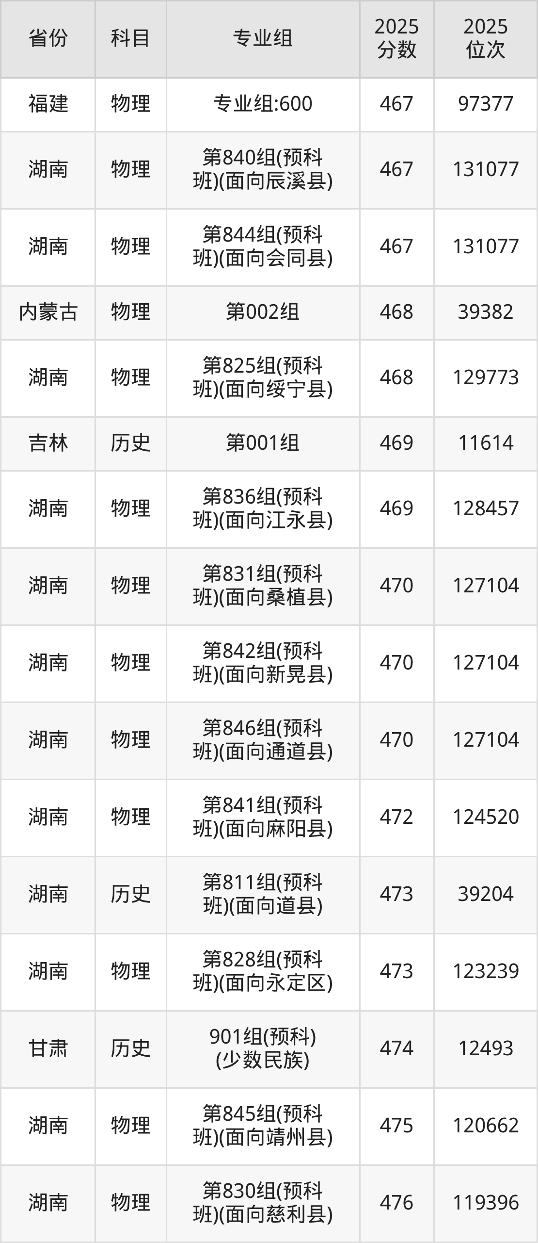 物理类:2025年吉首大学省内录取最低分是427分,对应的位次排名是184303名。建议:如果2026年排名超过184303名,那么被该校录取的概率较大。