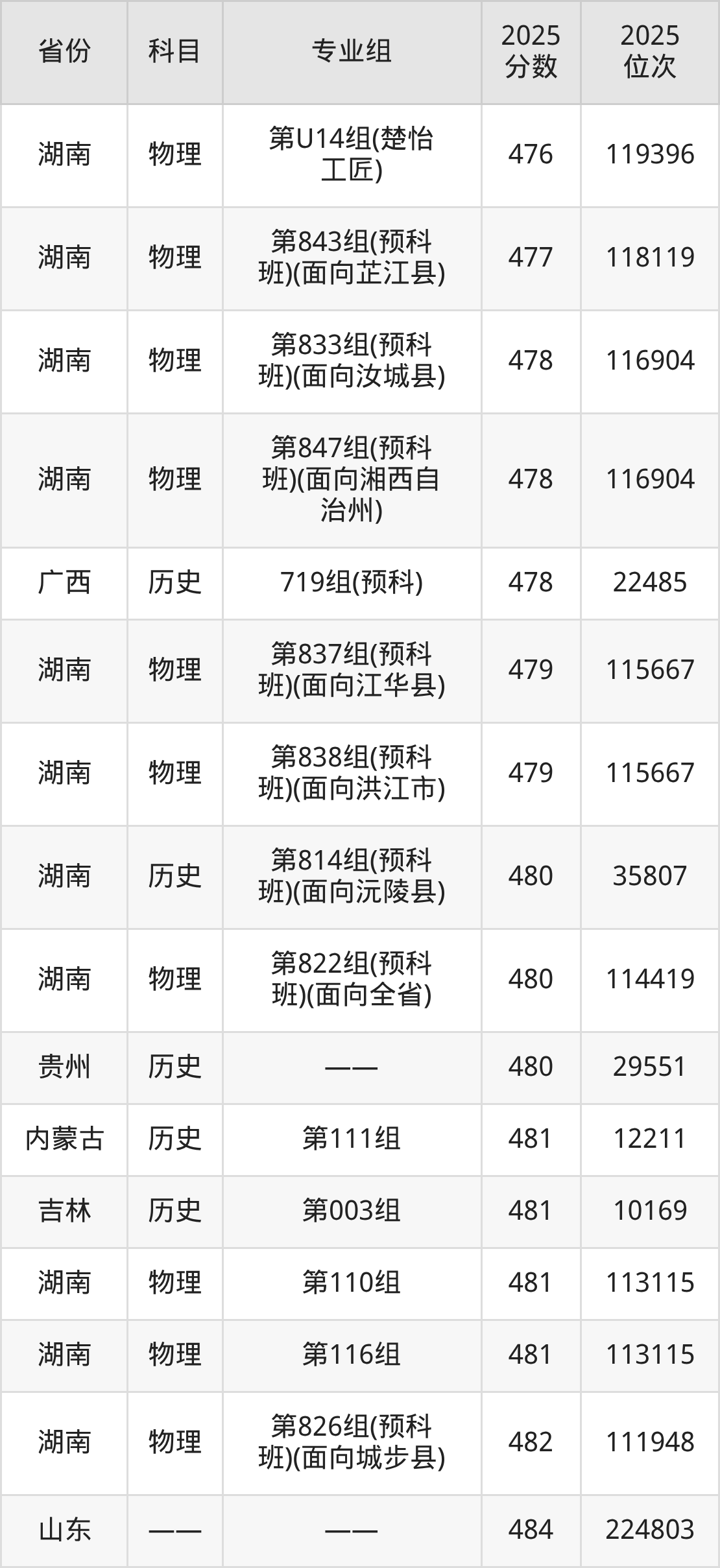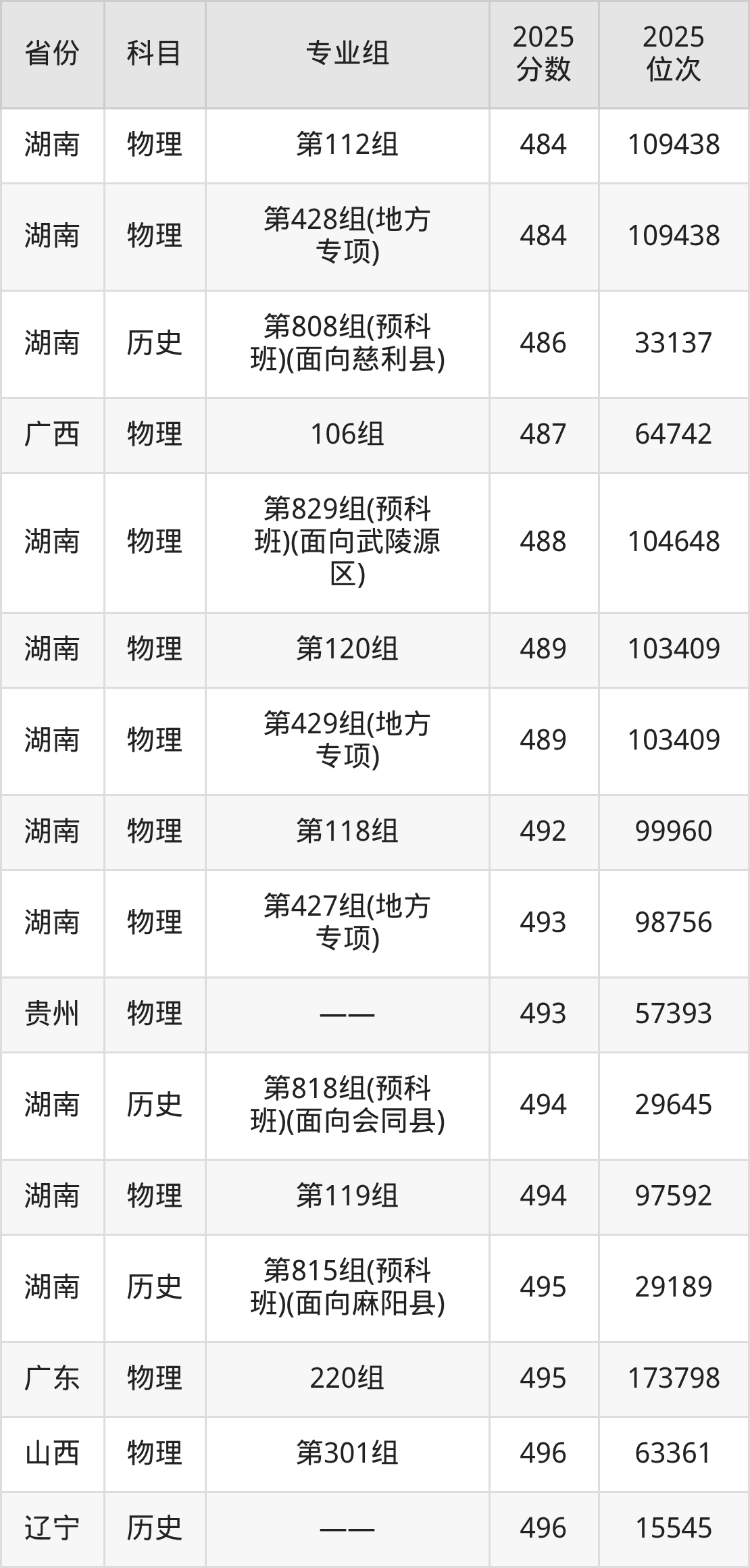 3+3地区:2025年吉首大学录取最低分是484分(山东),对应的位次排名是224803名。