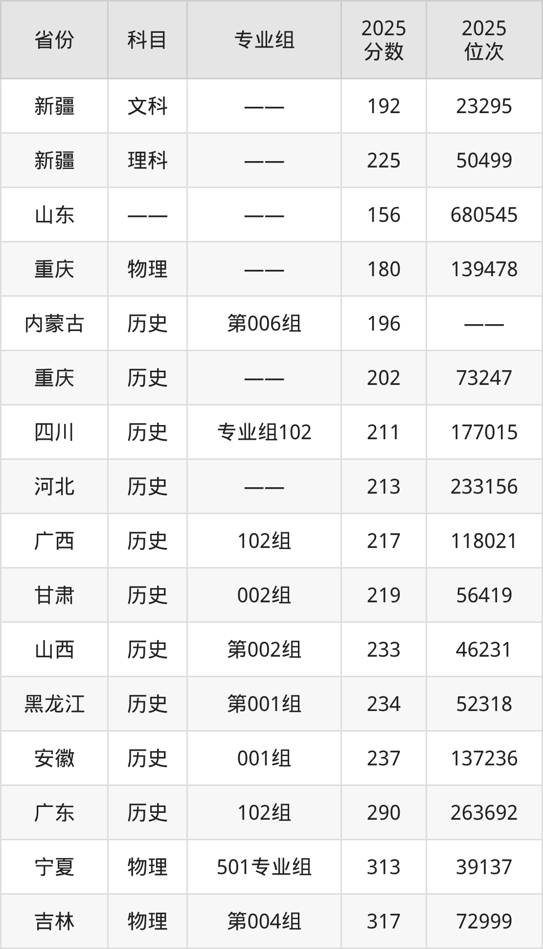 文科:2025年昆明卫生职业学院录取最低分是192分(新疆),对应的位次排名是23295名。