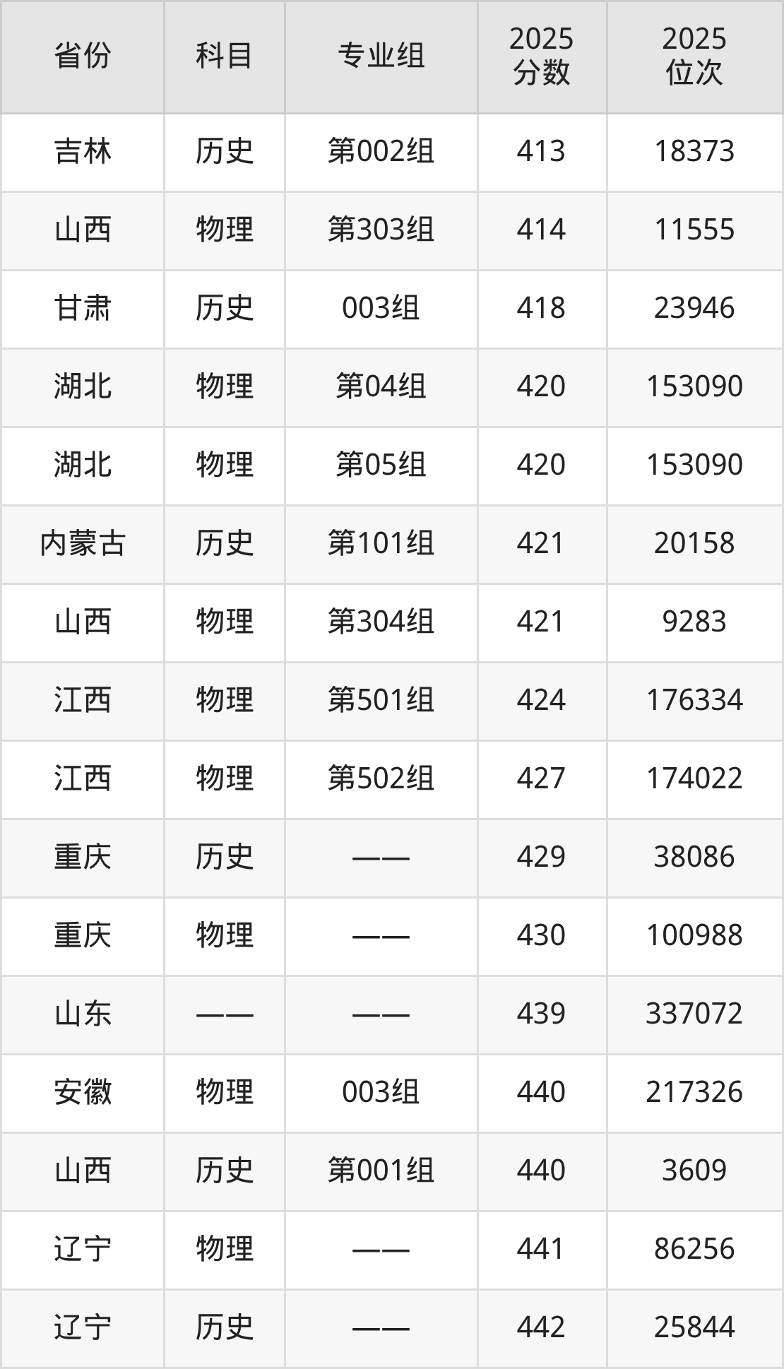 3+3地区:2025年西安航空职业技术学院录取最低分是439分(山东),对应的位次排名是337072名。