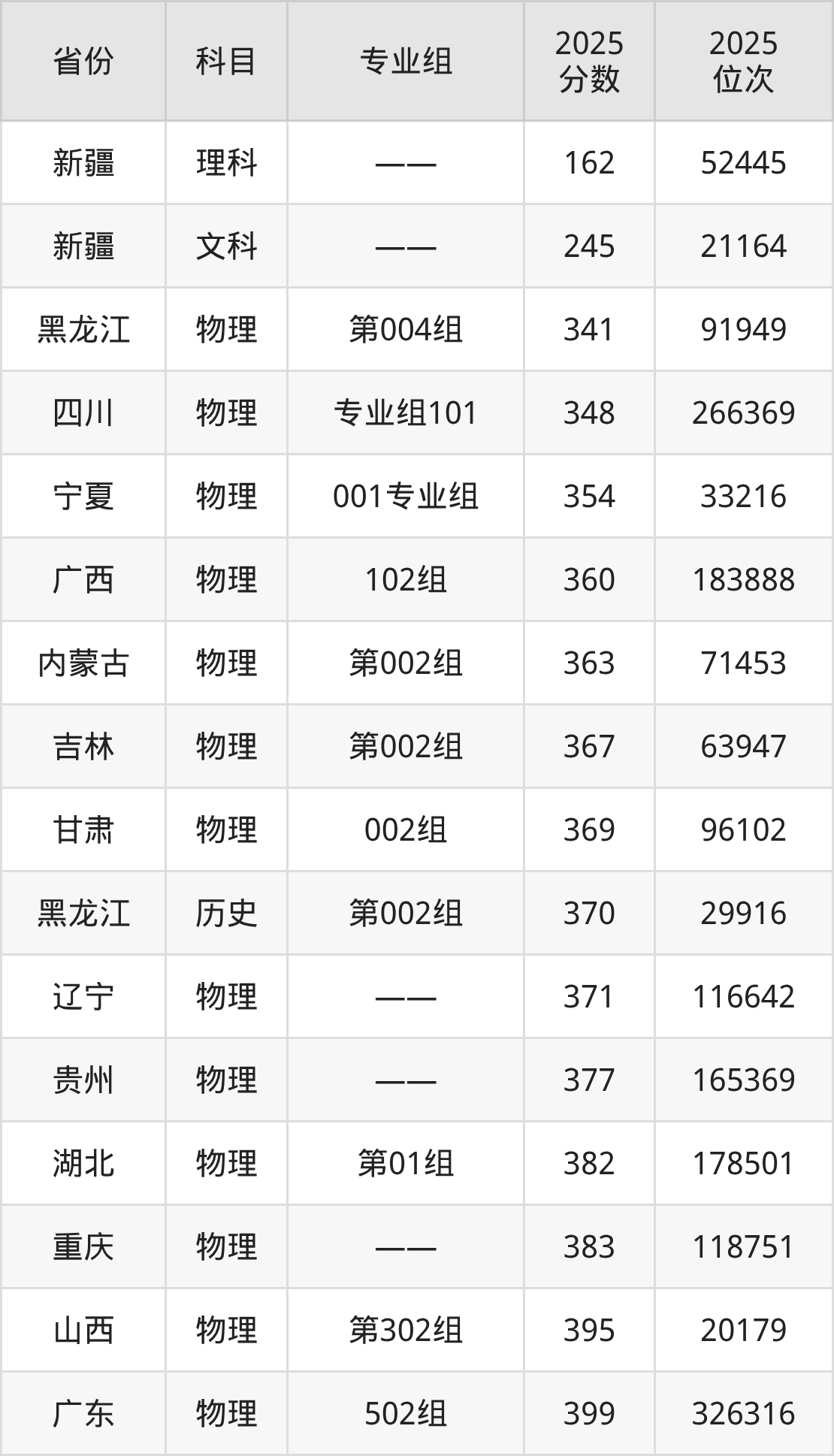 物理类:2025年哈尔滨职业技术大学录取最低分是348分(四川),对应的位次排名是266369名。