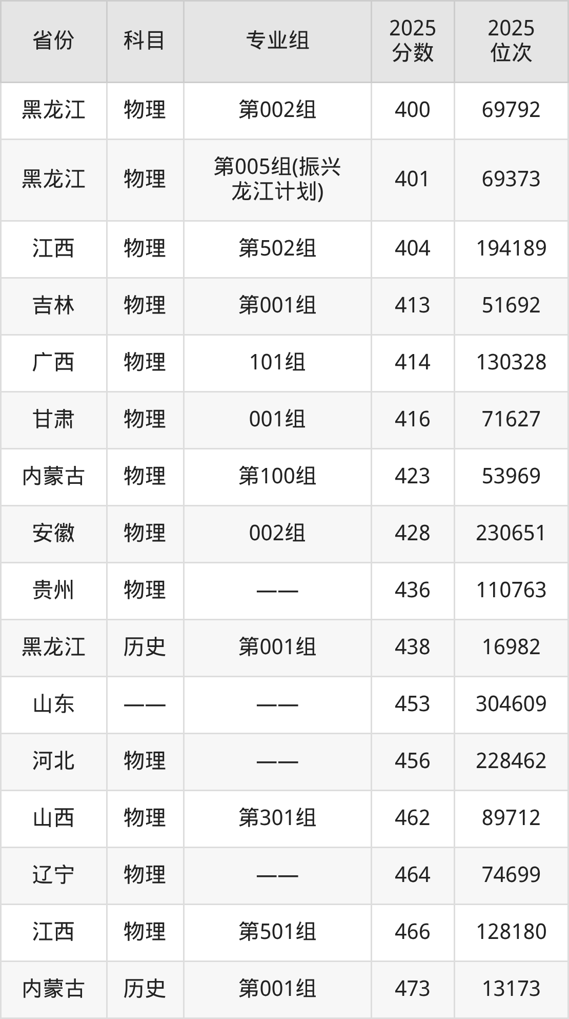 历史类:2025年哈尔滨职业技术大学录取最低分是473分(内蒙古),对应的位次排名是13173名。