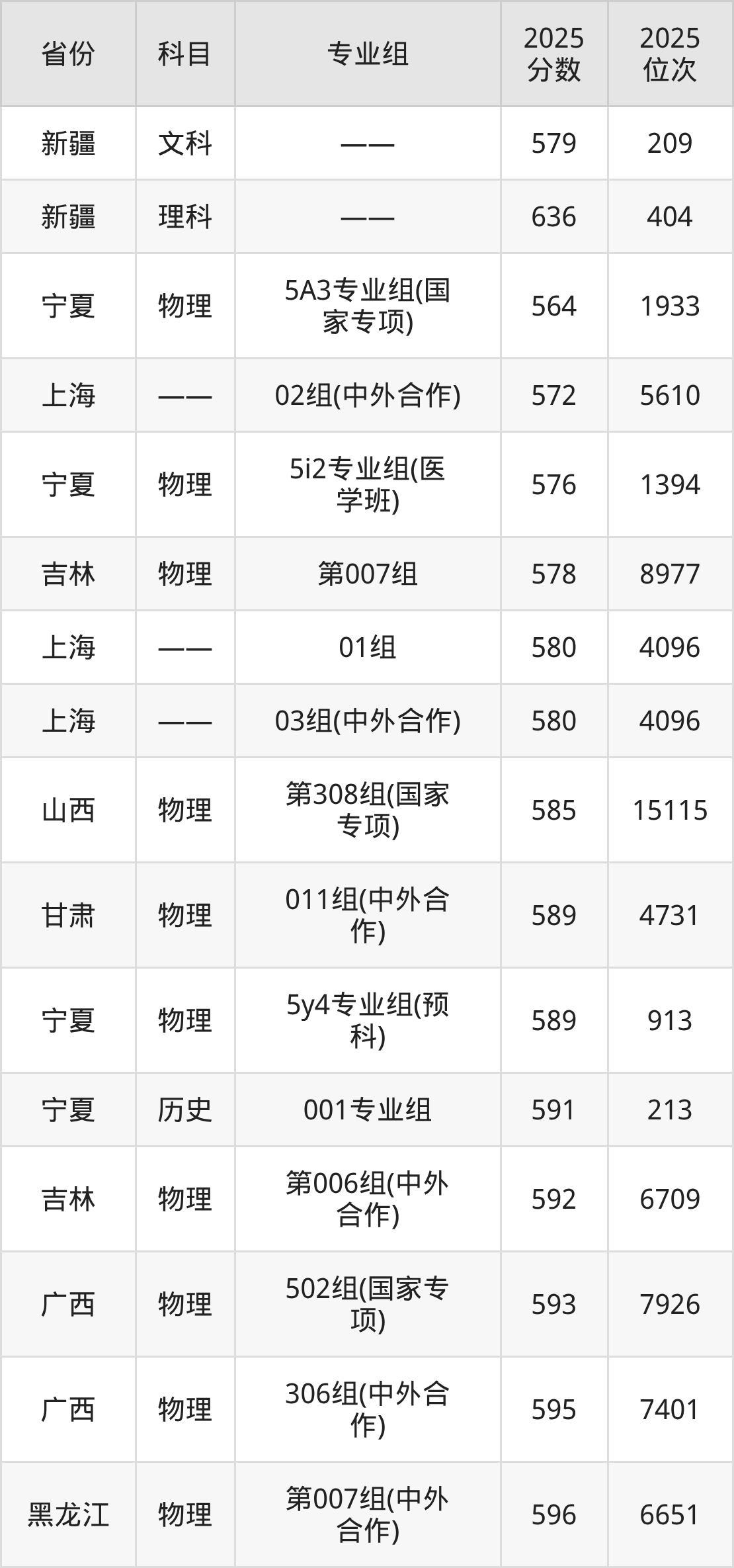 文科:2025年西安交通大学录取最低分是579分(新疆),对应的位次排名是209名。