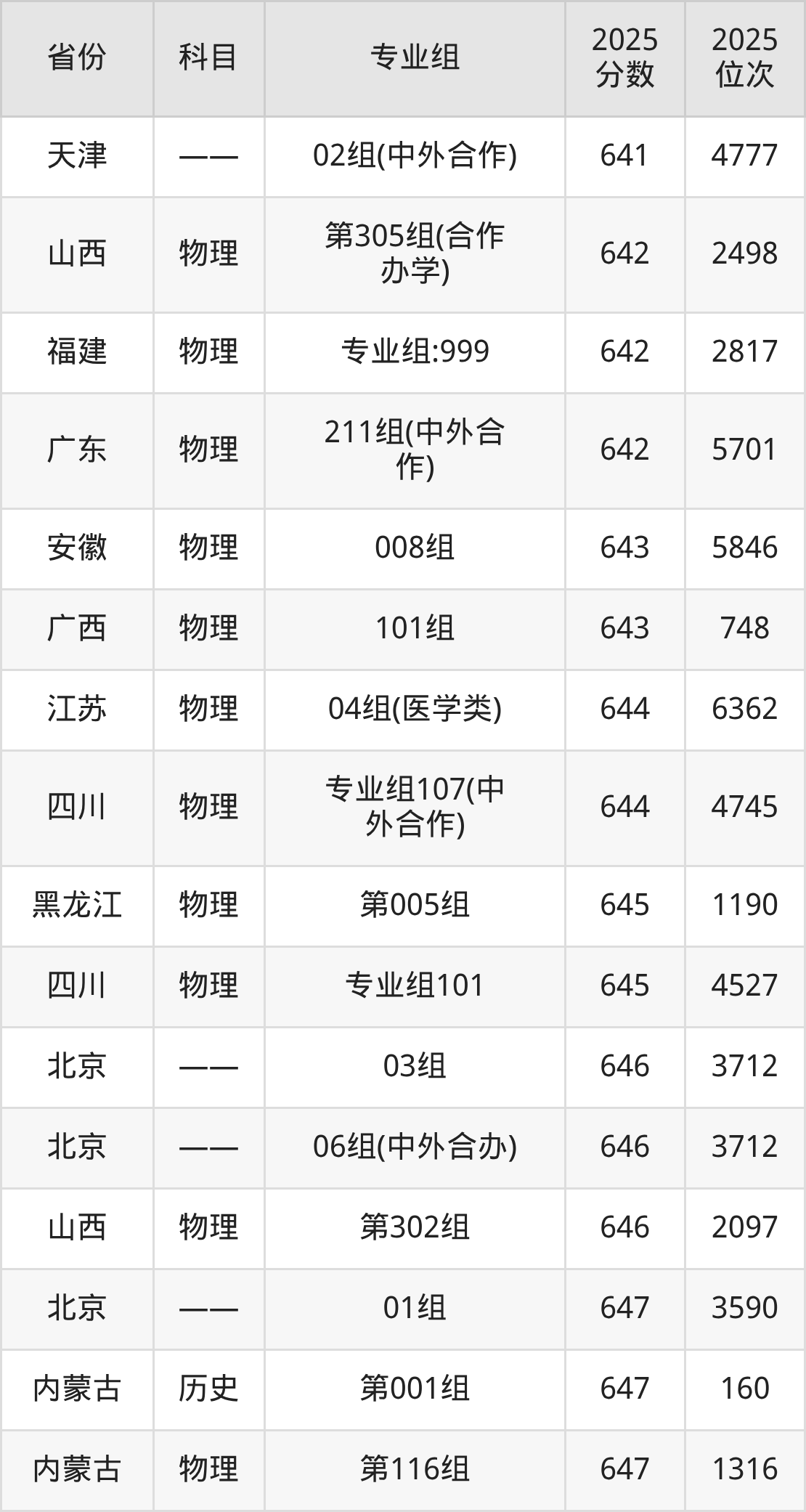 理科:2025年西安交通大学录取最低分是636分(新疆),对应的位次排名是404名。