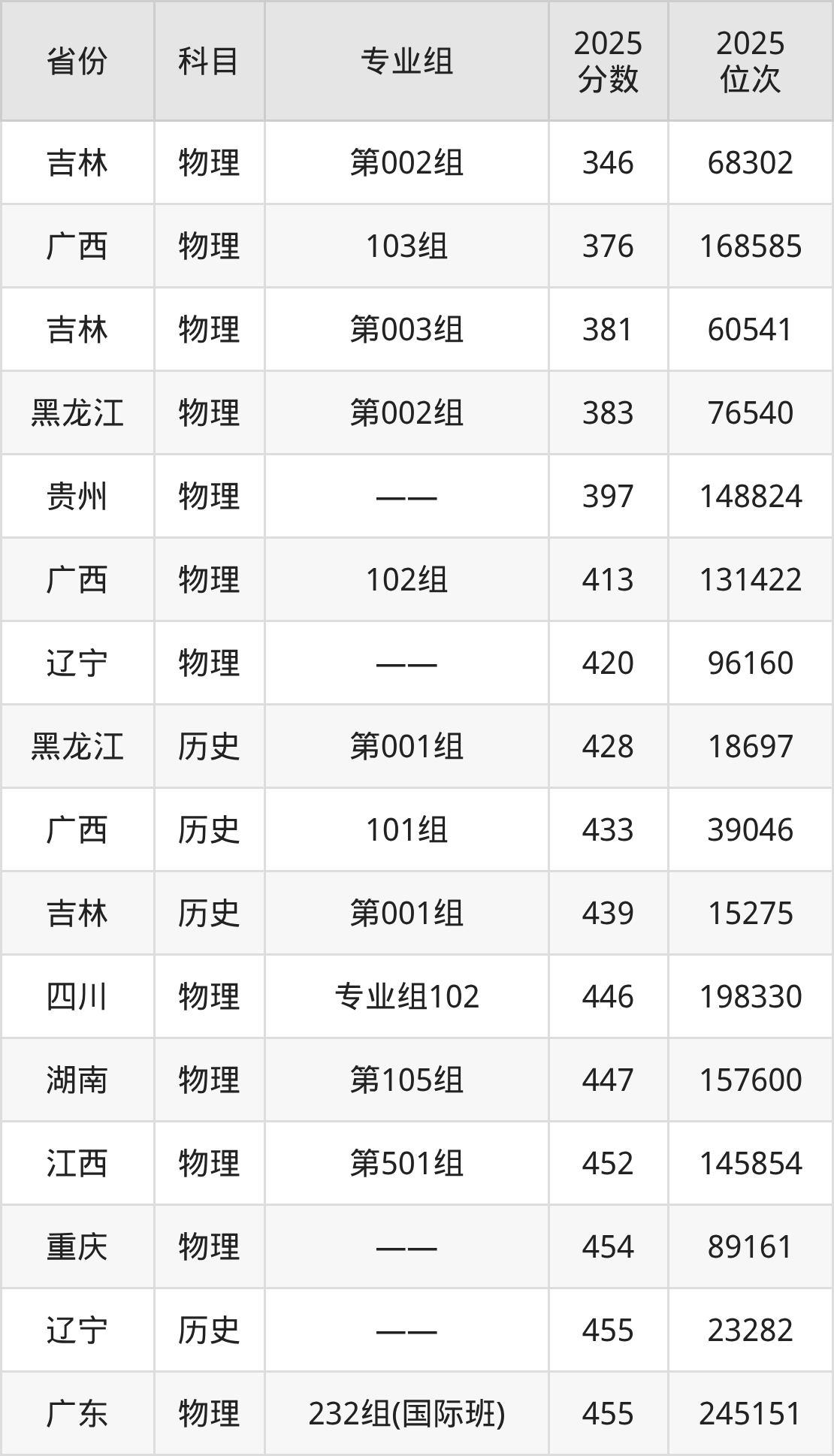 物理类:2025年广东外语外贸大学南国商学院录取最低分是346分(吉林),对应的位次排名是68302名。