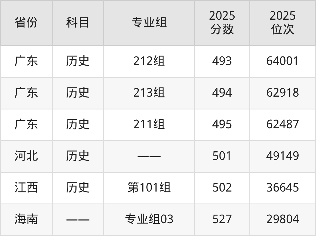 3+3地区:2025年广东外语外贸大学南国商学院录取最低分是480分(海南),对应的位次排名是43089名。