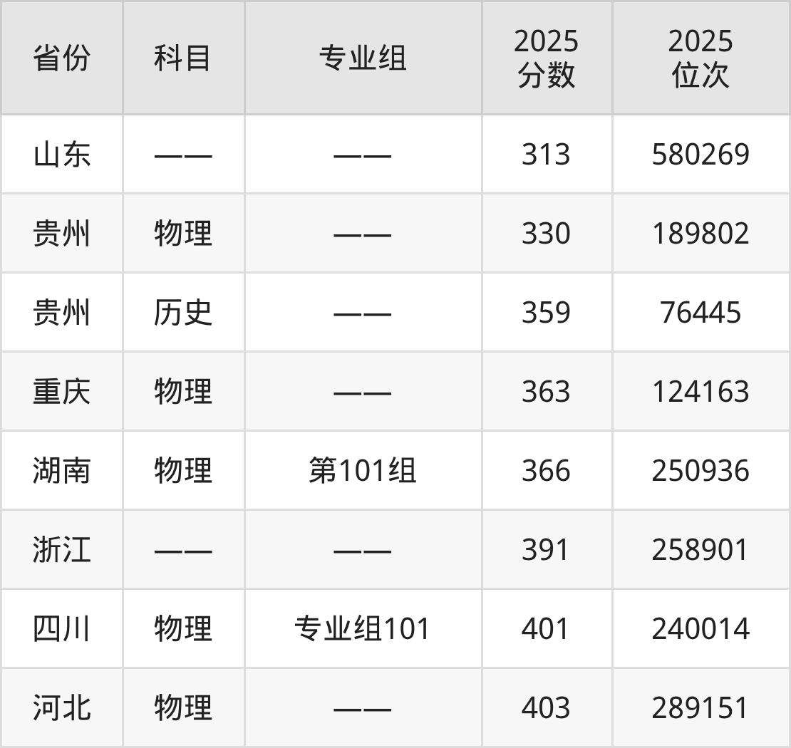3+3地区:2025年贵州工业职业技术学院录取最低分是313分(山东),对应的位次排名是580269名。