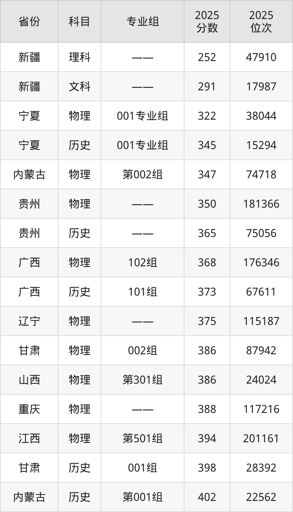 物理类:2025年四川水利职业技术学院录取最低分是322分(宁夏),对应的位次排名是38044名。