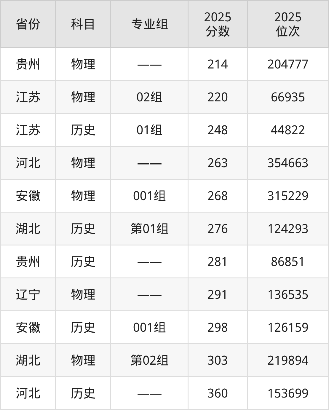 物理类:2025年合肥科技职业学院录取最低分是214分(贵州),对应的位次排名是204777名。